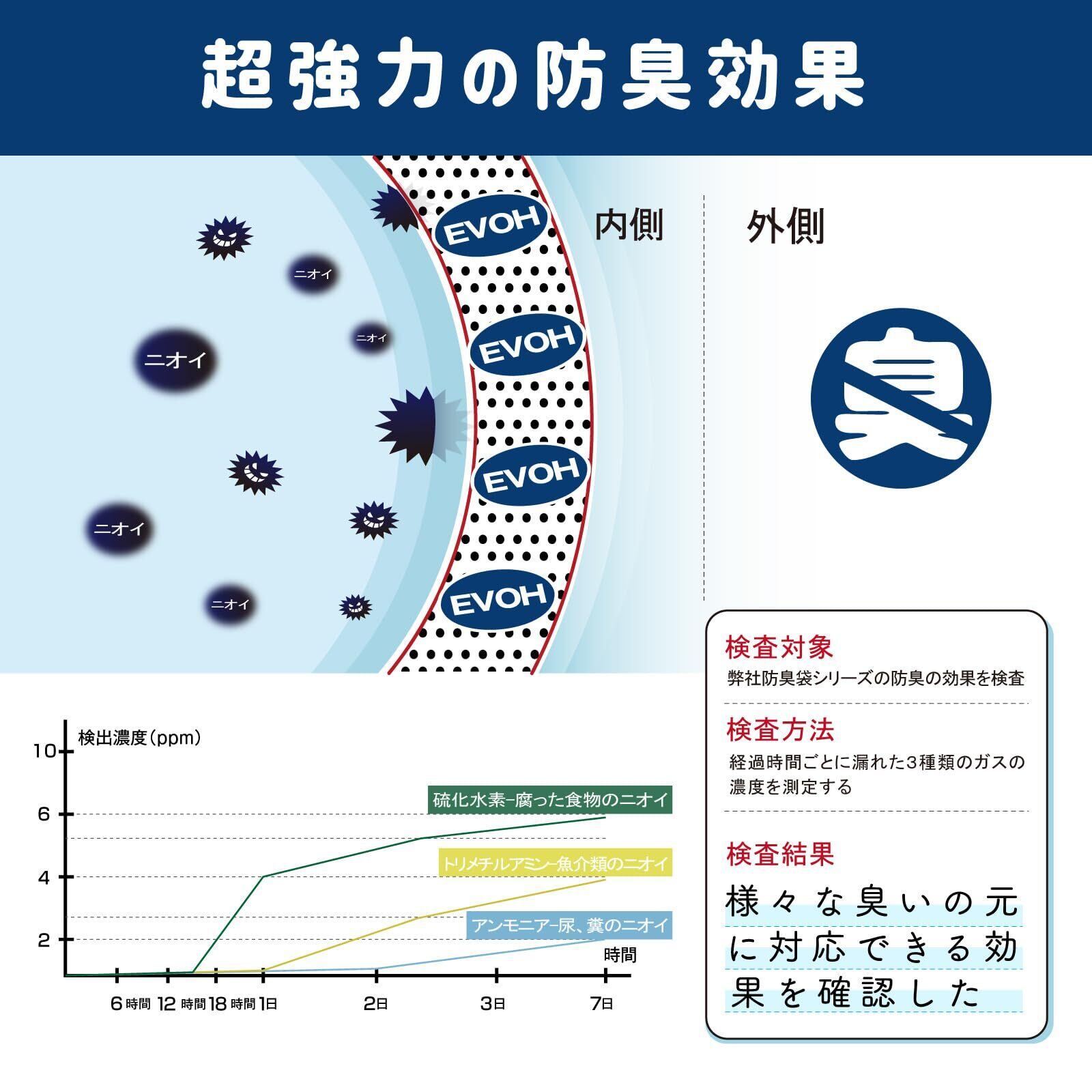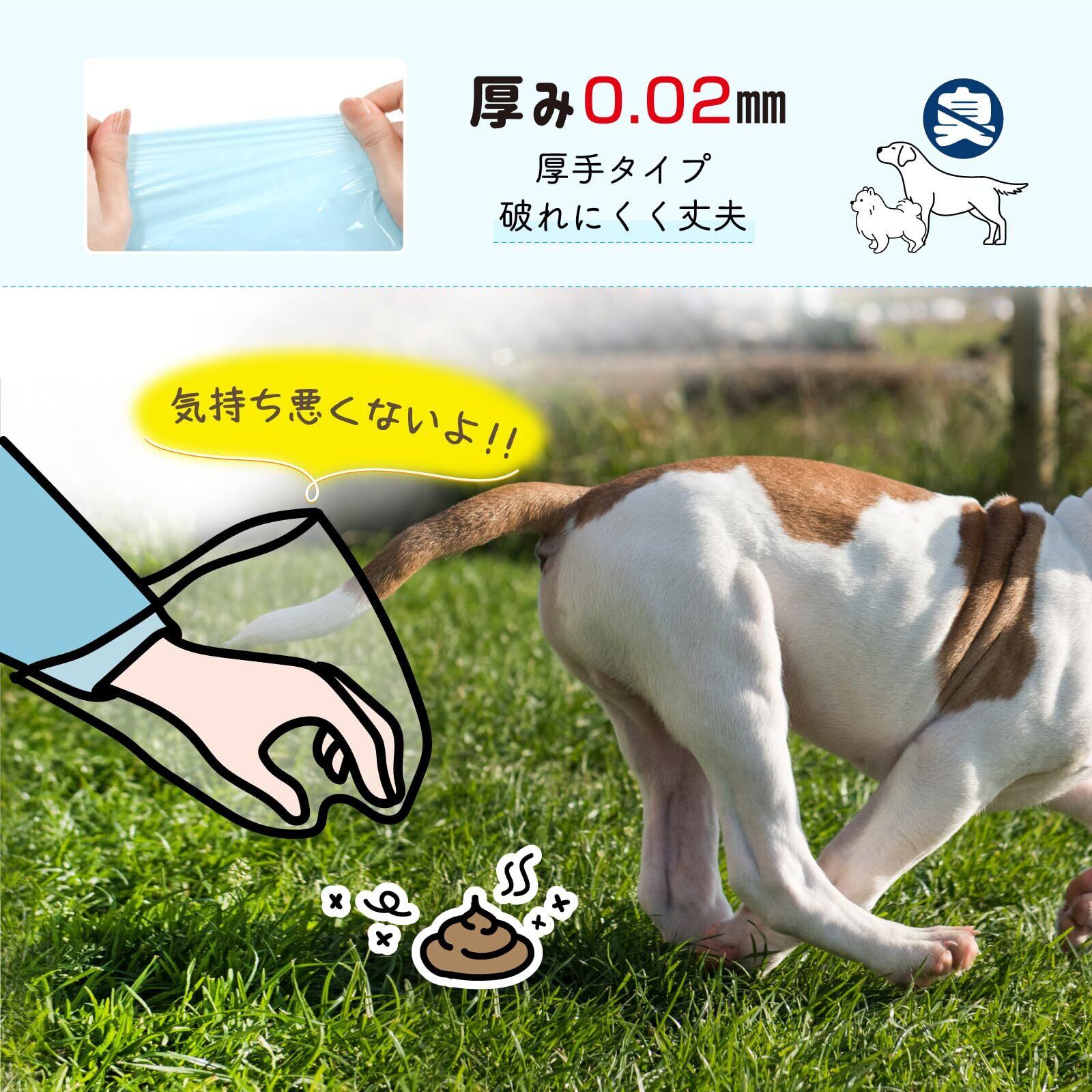 臭いをしっかり遮断:最高の気体バリア性があるEVOH樹脂(エバール)を採用して、びっくりするほどの臭わない袋を作り出します。ワンちゃんのうんちを袋に入れて縛った瞬間、ニオイが激減します。手にも嫌な匂いが残っていません。