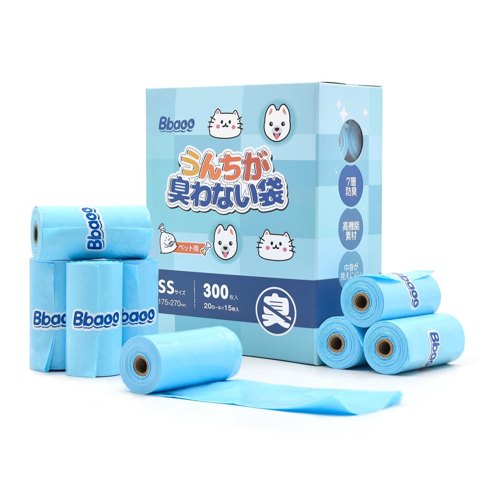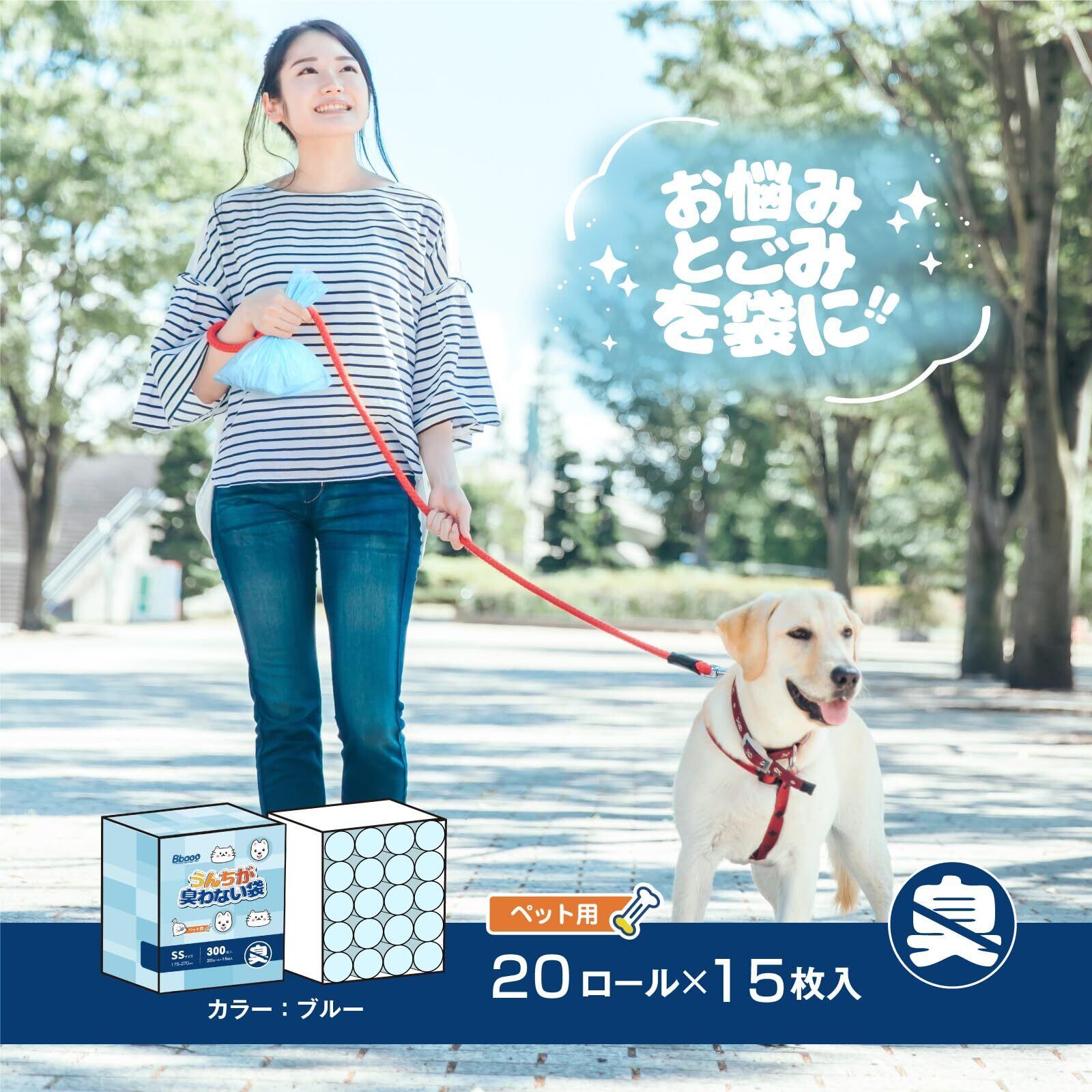 Bbaoo うんちが臭わない袋 犬うんち処理袋 (17.5x27cm)300個入り20ロール無香料 防臭ポリ袋 お散歩マナー袋 サニタリー袋 お出かけ 車内 猫砂用 厚さ0.02mm 持ち運び便利【カラー:ブルー】