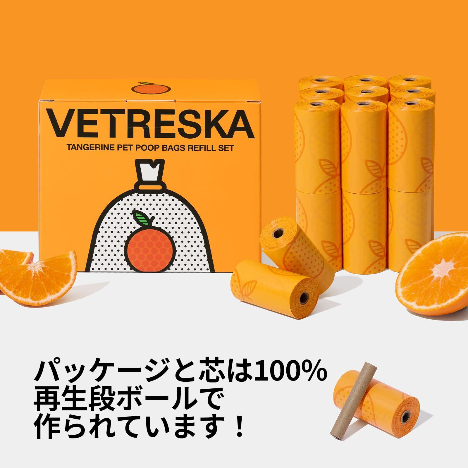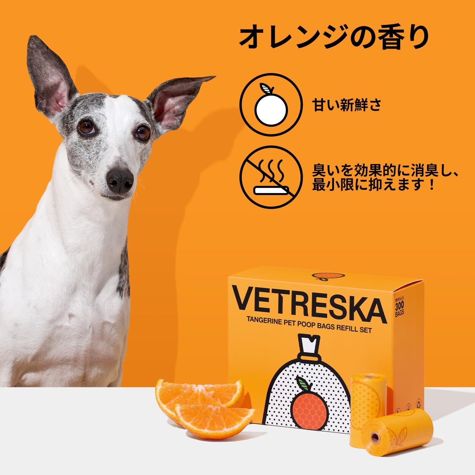VETRESKA ペット用ウンチ処理袋 犬うんちが臭わない袋 ぽいたくんうんち袋 防臭袋 猫 トイレ 袋 臭いが漏れ防止 生分解性 猫砂ごみ袋 サニタリー 袋 お出かけの携帯ゴミ袋 オレンジの香りつき消臭袋(20ロール 300枚)