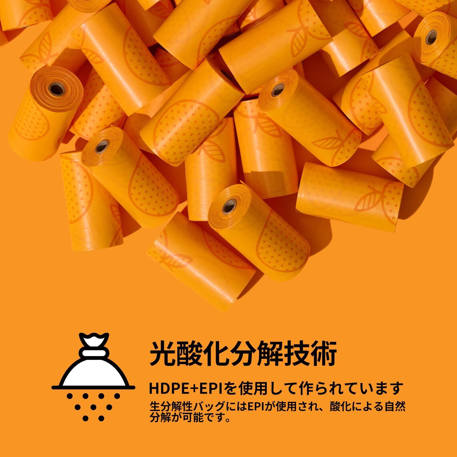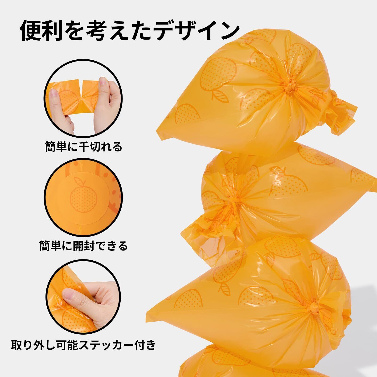 【オレンジの香り】オレンジ ディスペンサー エチケット袋 セットのエチケット袋はオレンジの花の香りが楽しめ、清潔で楽しい散歩やお出かけの体験ができます。犬や猫のフンの不快なにおいを効果的に軽減します。