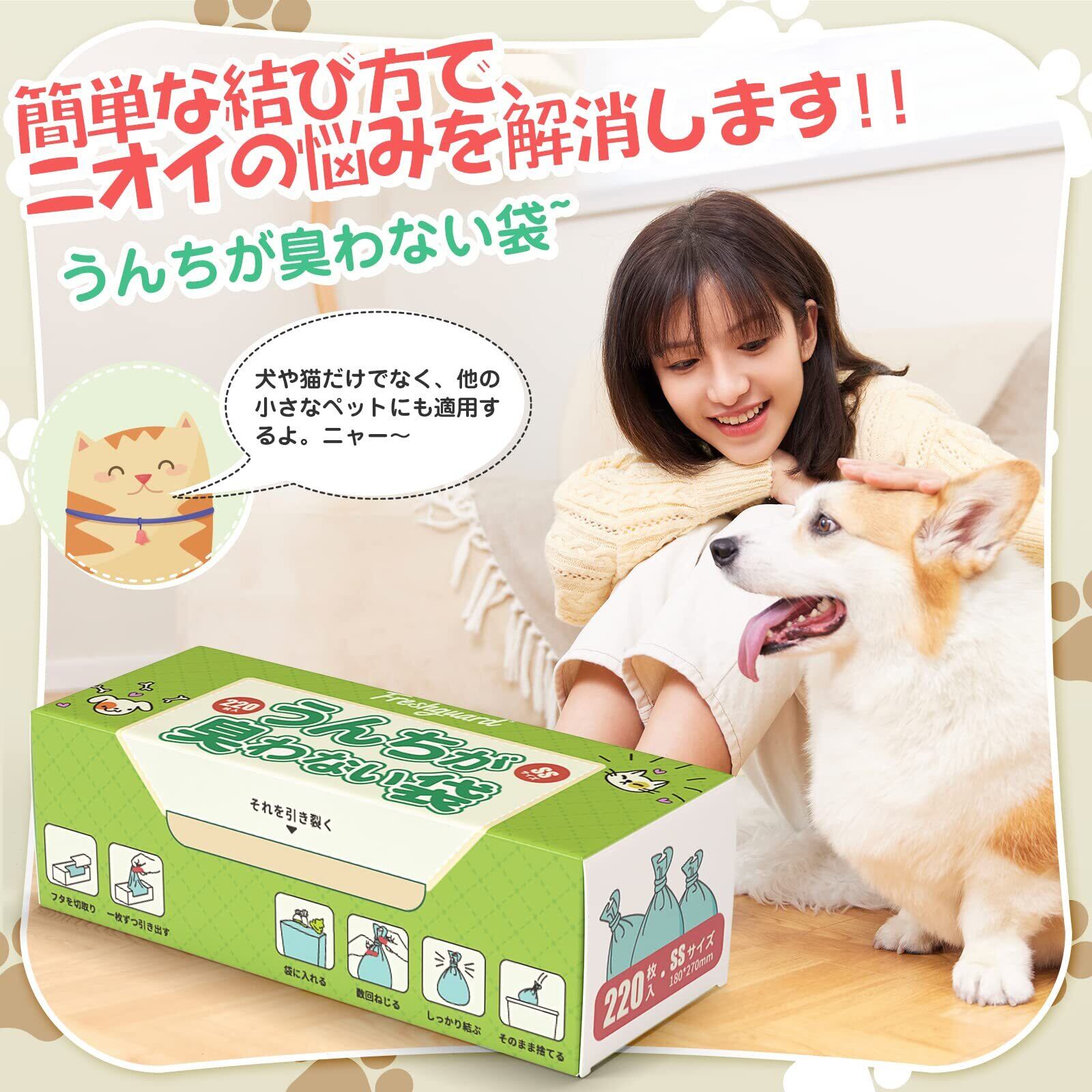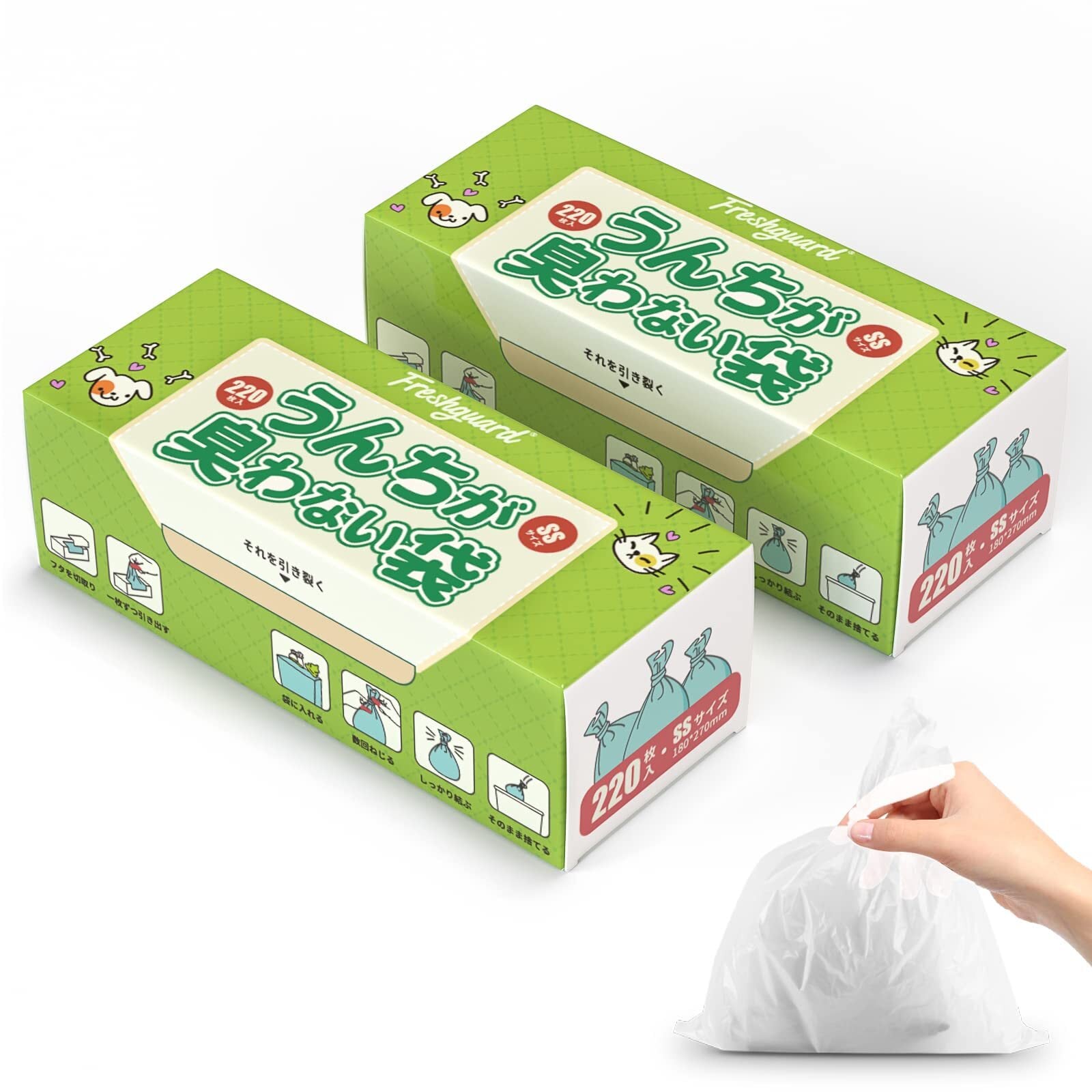 防臭袋 ペット用 うんちが臭わない袋 うんち処理袋 ゴミ袋 犬/猫用 2個セット SSサイズ 440枚入 ホワイト