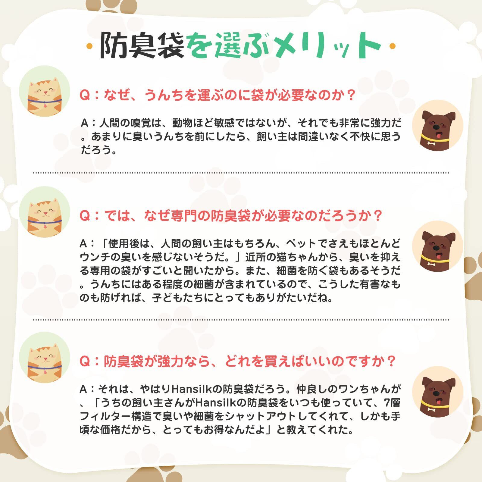 【7層のフィルム構造、防臭性抜群!】うんこの臭いは漏れず、長時間が経ったら臭わない、その理由は最新の防臭素材を採用してるから、 防臭専用フィルムに配合されている、7層防臭フィルムが臭いを強力に閉じ込めます、 臭わないだけでなく、長期間ニオイを漏らさない性能もあります。圧倒的な防臭力を持った、安心・エコな高機能素材です!