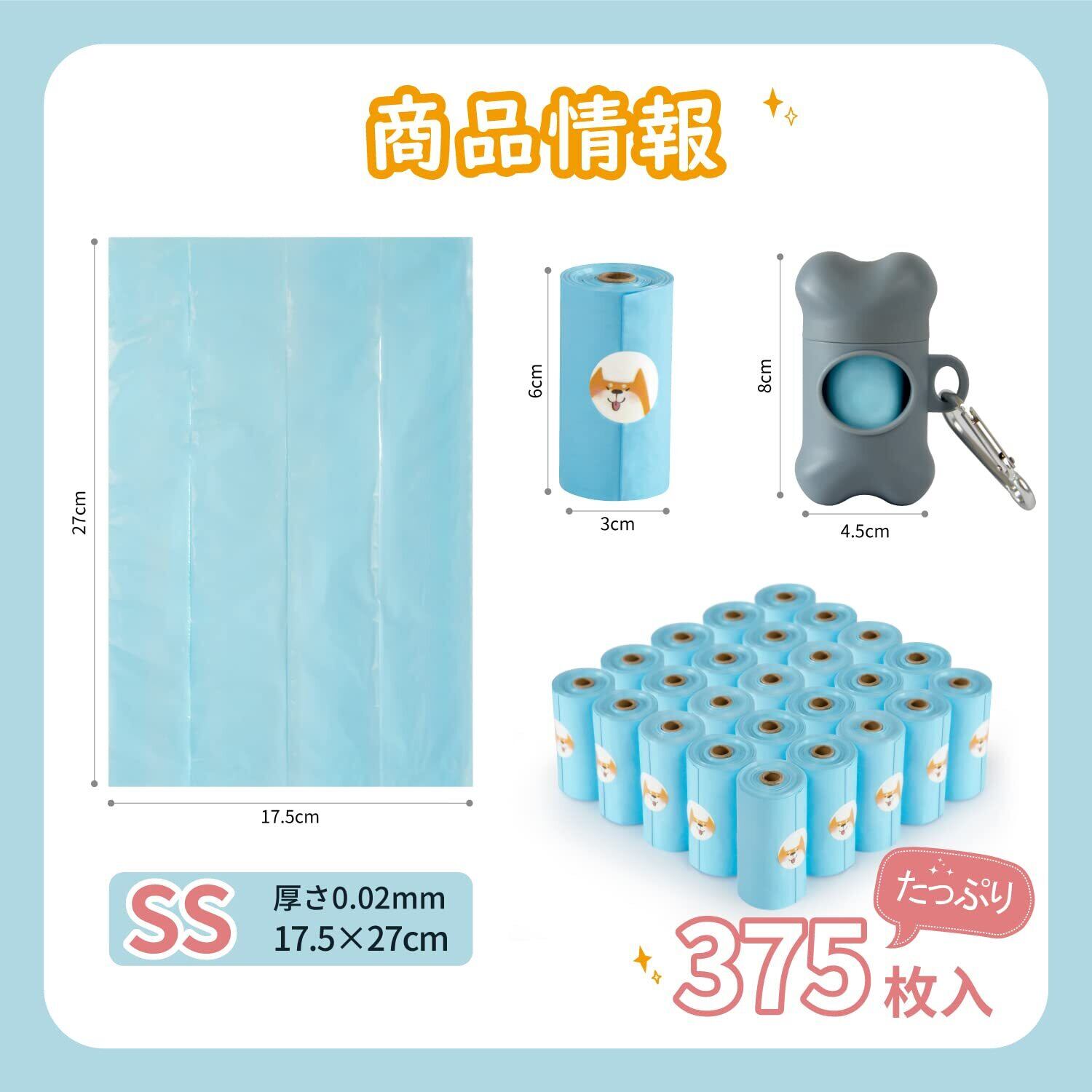 Deefre うんちが臭わない袋 犬うんち処理袋 375枚入 SSサイズ(17.5x27cm) ディスペンサー付き 無香料 防臭ポリ袋 フン処理袋 お散歩マナー袋 お出かけ 車内 猫砂用 厚さ0.02mm 持ち運び便利 サニタリー袋【袋カラー:ブルー】
