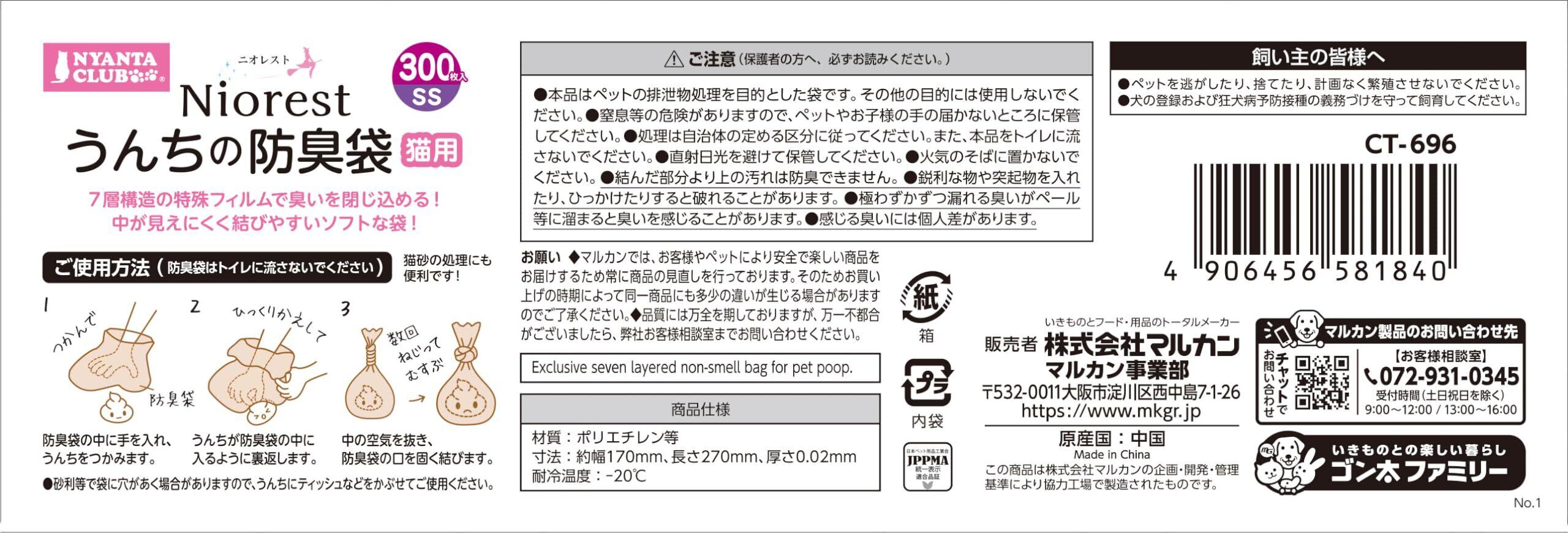 マルカン ニオレスト うんちの防臭袋 【SSサイズ 300枚】 猫 臭い対策 ペット イヤな臭いを超防臭 99.9% 中身が見えにくい