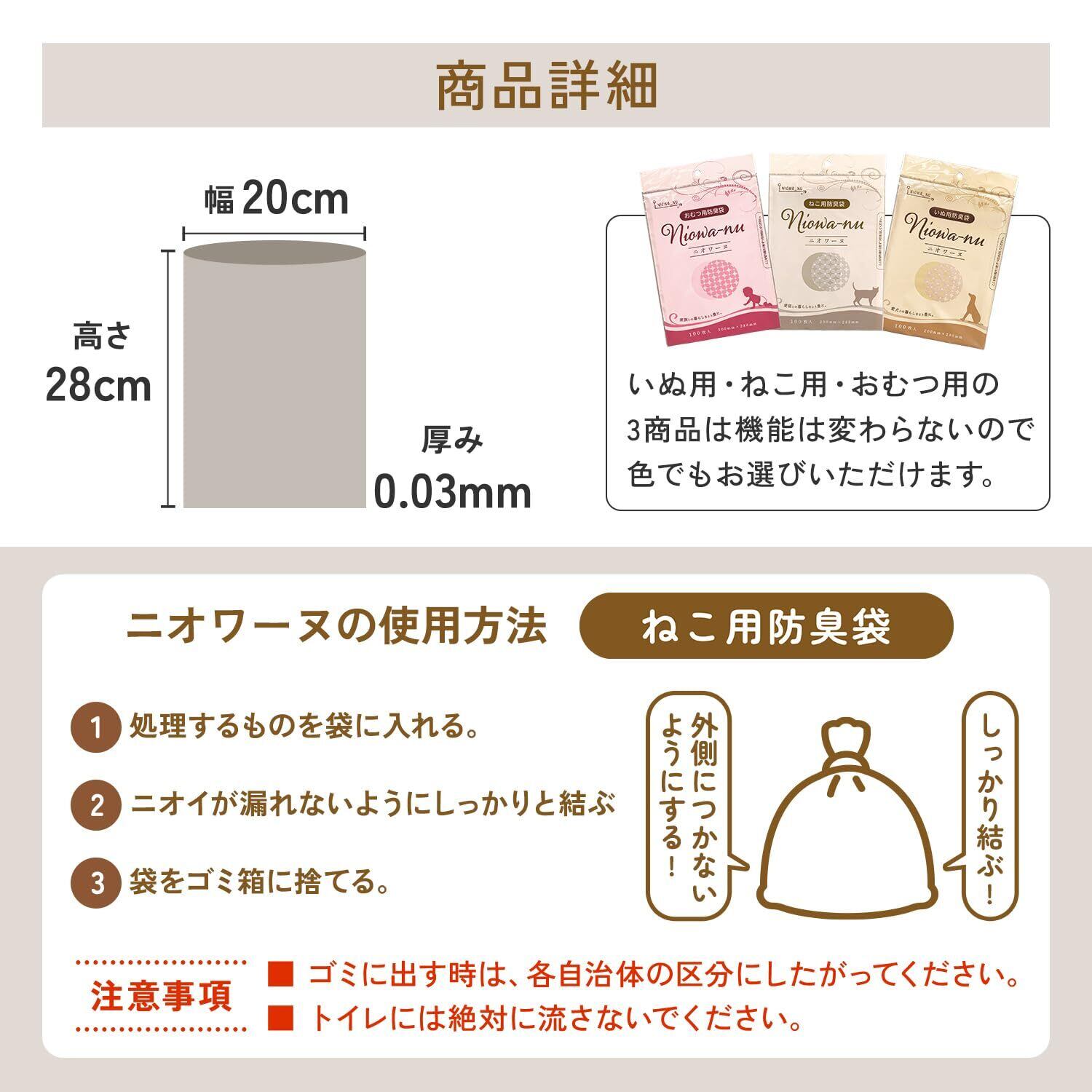 三共ポリエチレン ニオワーヌ 持続性の高い防臭効果 驚きの防臭袋 ねこ用 グレー 100枚入 200mm×280mm うんち 消臭袋 臭わない袋