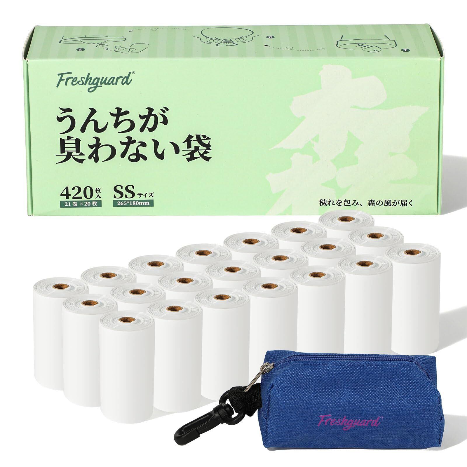 Freshguard うんちが臭わない袋 420枚 SSサイズ ペット用 防臭袋 エチケット袋 犬うんち処理袋 防臭袋 うんち処理袋 におわない袋 無香料 防臭ポリ袋 お散歩マナー袋 サニタリー袋 お出かけ 車内 猫砂用 厚さ0.02mm 持ち運び便利【カラー:ホワイト】