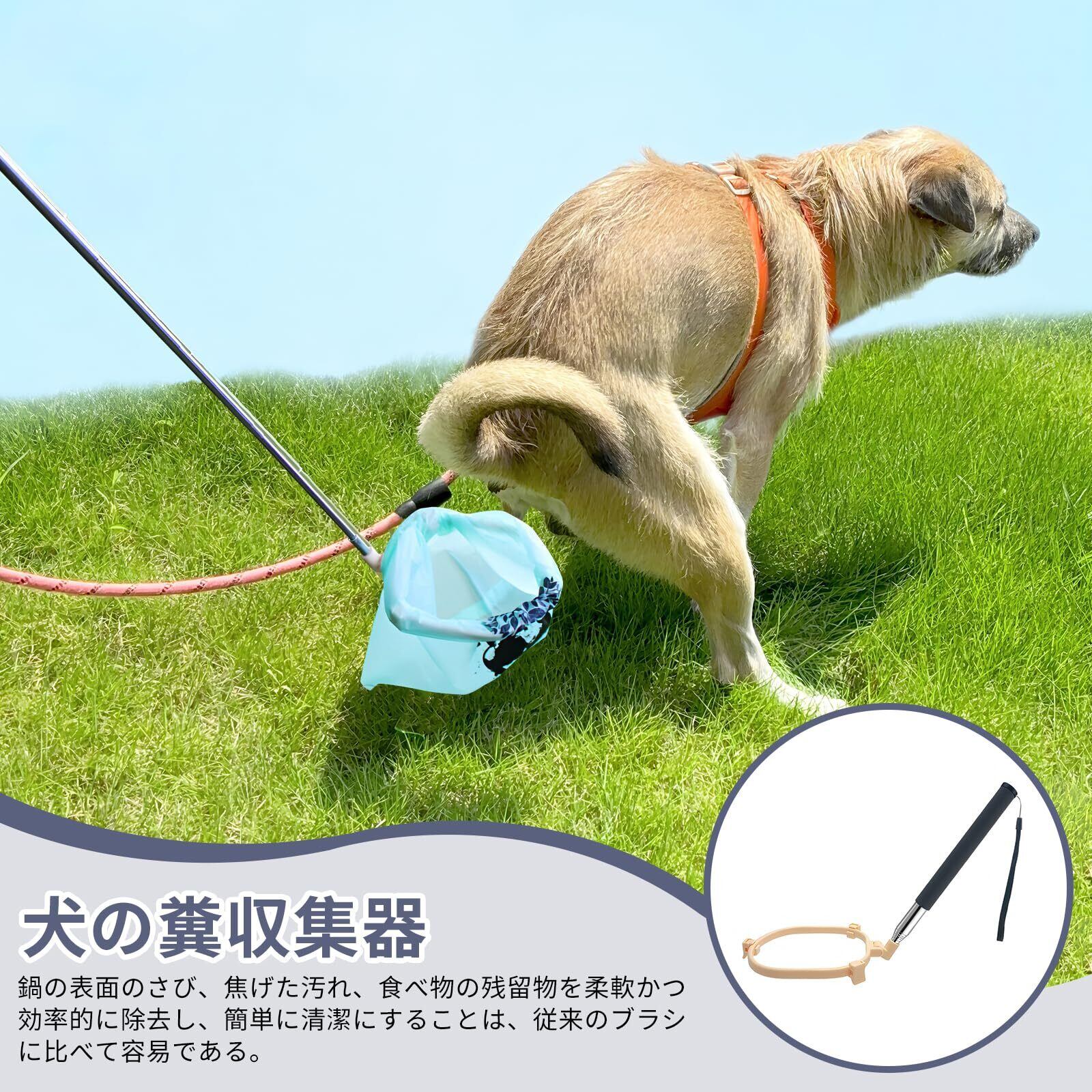 【お手入れ簡単】ビニール袋を装着してうんちをキャッチ、袋を結んでそのまま処分可能。水洗いするだけで清潔を保て、手や地面を汚さず衛生的に使用できます。