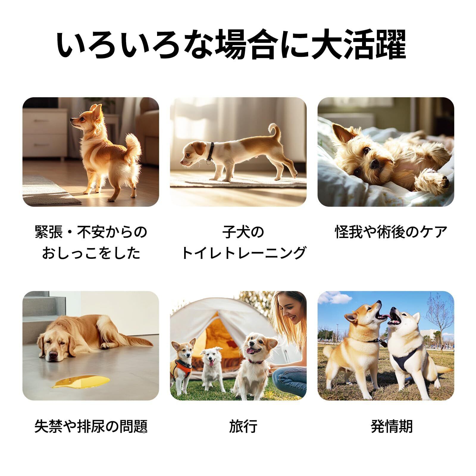 【驚異の吸収力】高分子吸収材と立体モレ防止ギャザーを採用し、オシッコを素早く吸収してゼリー状に固めるので、漏れを防ぎます。動きやすさを重視した超薄型デザインで、ワンちゃんも快適に過ごせます。