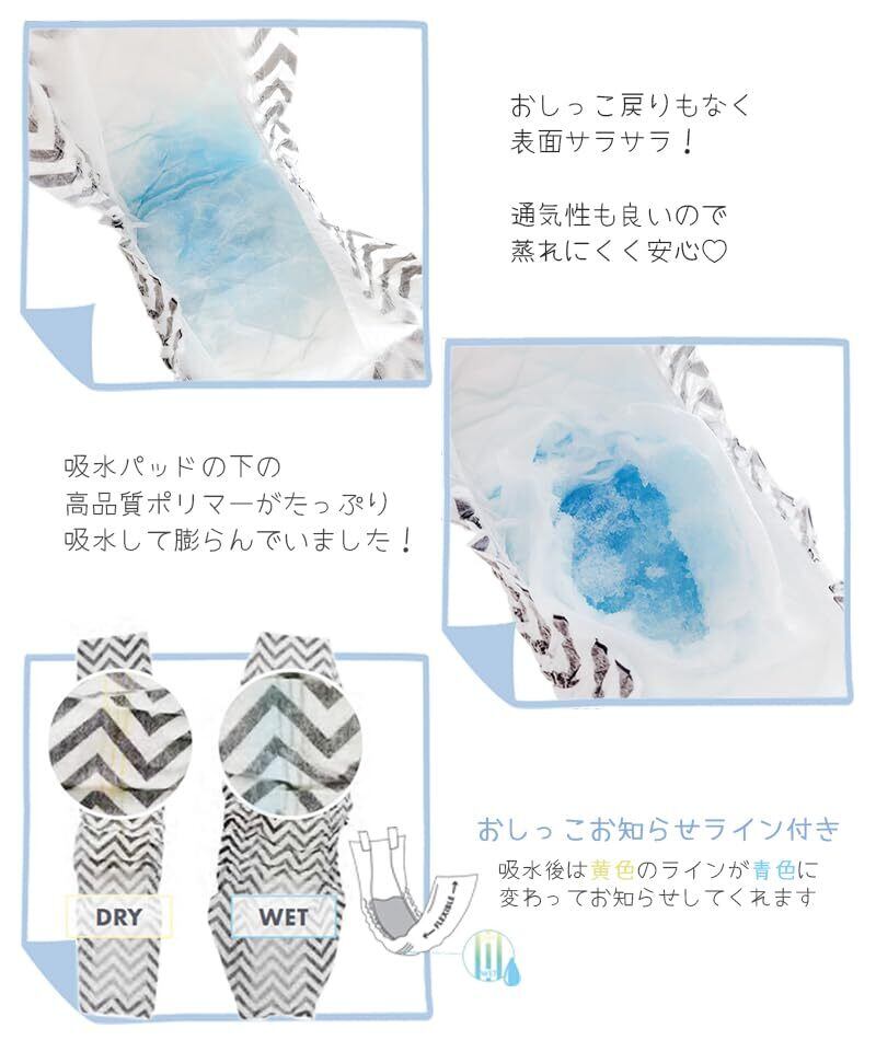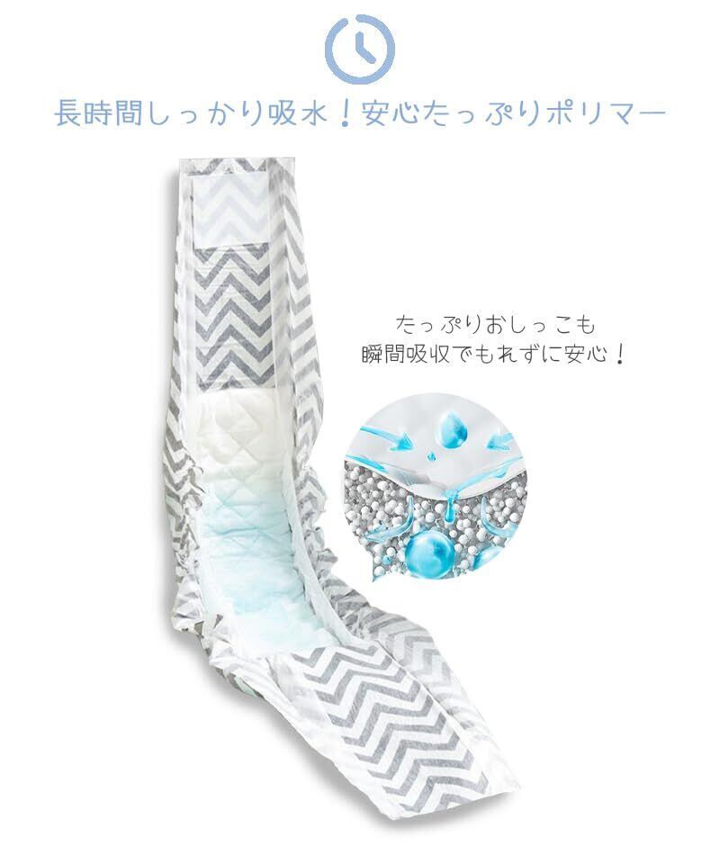 材質 表面材/ポリオレフィン・ポリエステル不織布 吸水材/綿状パルプ・吸水紙・高分子吸水材 防水材/ポリエチレンフィルム 結合材/ホットメルト接着剤 外装材/ポリエチレンフィル