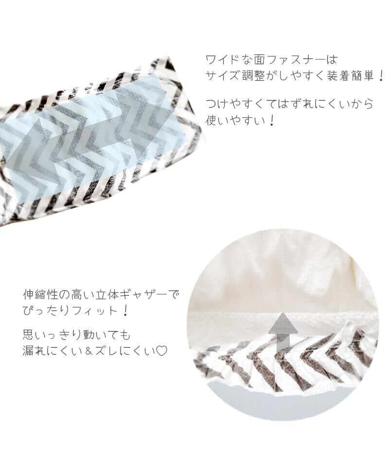 前後の指定がないので都度確認しなくて良く、マジックテープの部分が広いので巻きつけた時のサイズ調整がしやすい設計になっています。