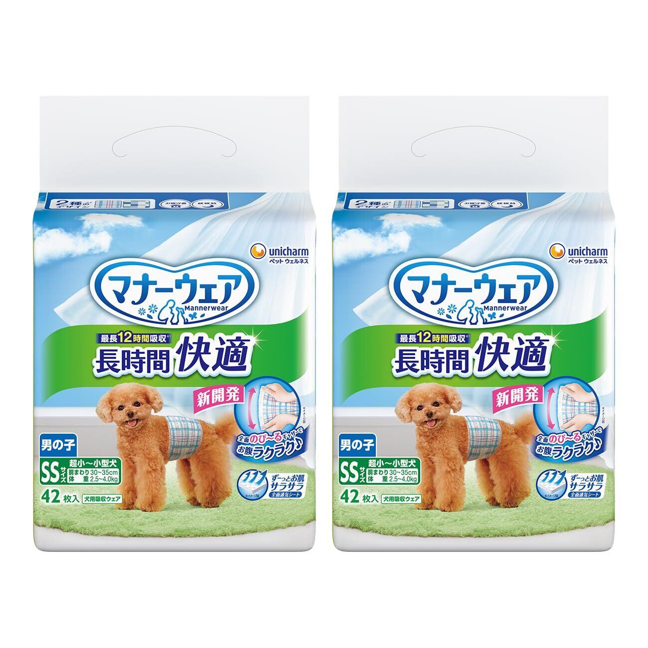マナーウェア 犬用おむつ 長時間快適オムツ 男の子用 SS 超小型犬用 小型犬用 84枚(42枚×2袋)[犬おむつ]