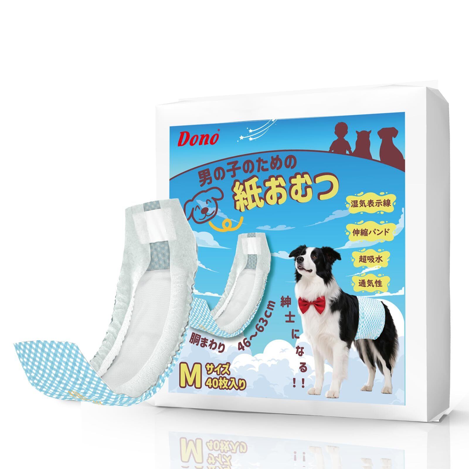Dono 犬 おむつ 男の子用 マナーベルト おしっこ吸収 犬オムツ 長時間高吸収通気性 漏れ防止 ずれ防止 使い捨て 犬用おむつ 小型犬 中型犬 大型犬 お漏らし対策 介護 術後服 腹巻き おむつカバー Mサイズ 40枚入り