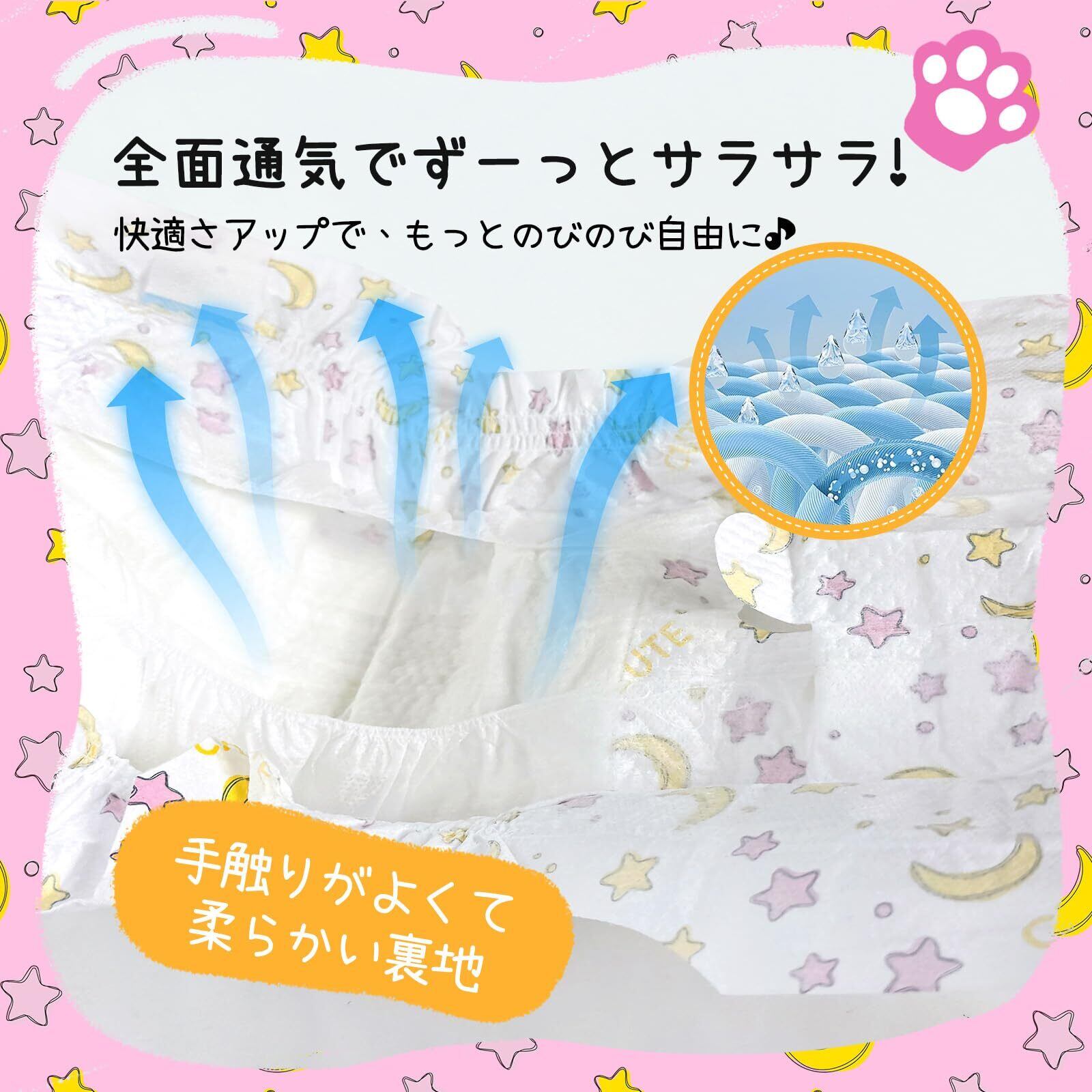 ・全面通気シートでムレにくく、お肌も快適
