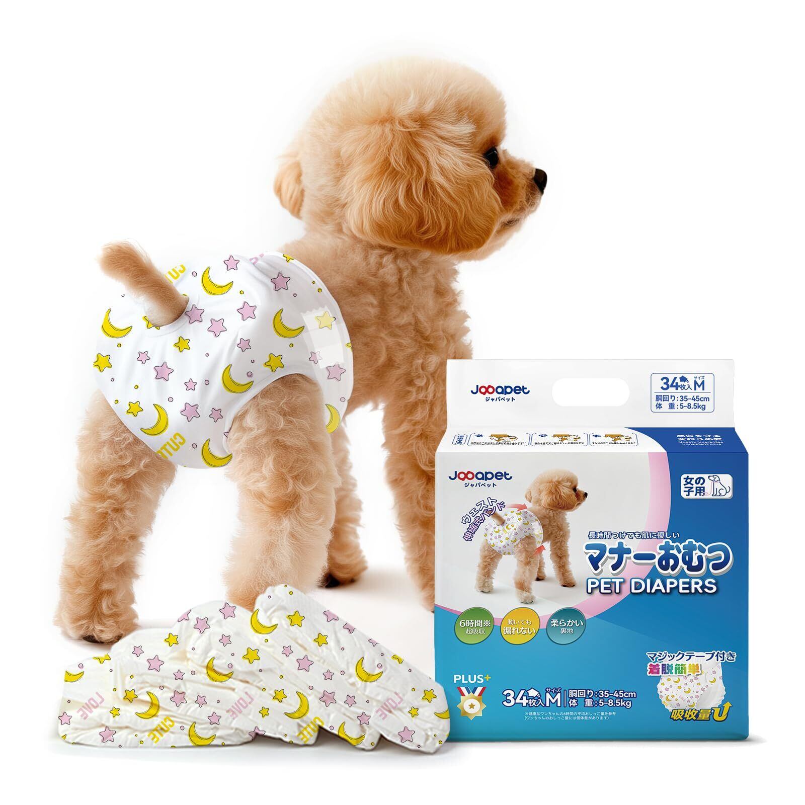Japapet 犬用おむつ 女の子用 犬オムツ メス ペットオムツ マナーおむつ 高齢犬 小型・中型犬用 Mサイズ 34個入り