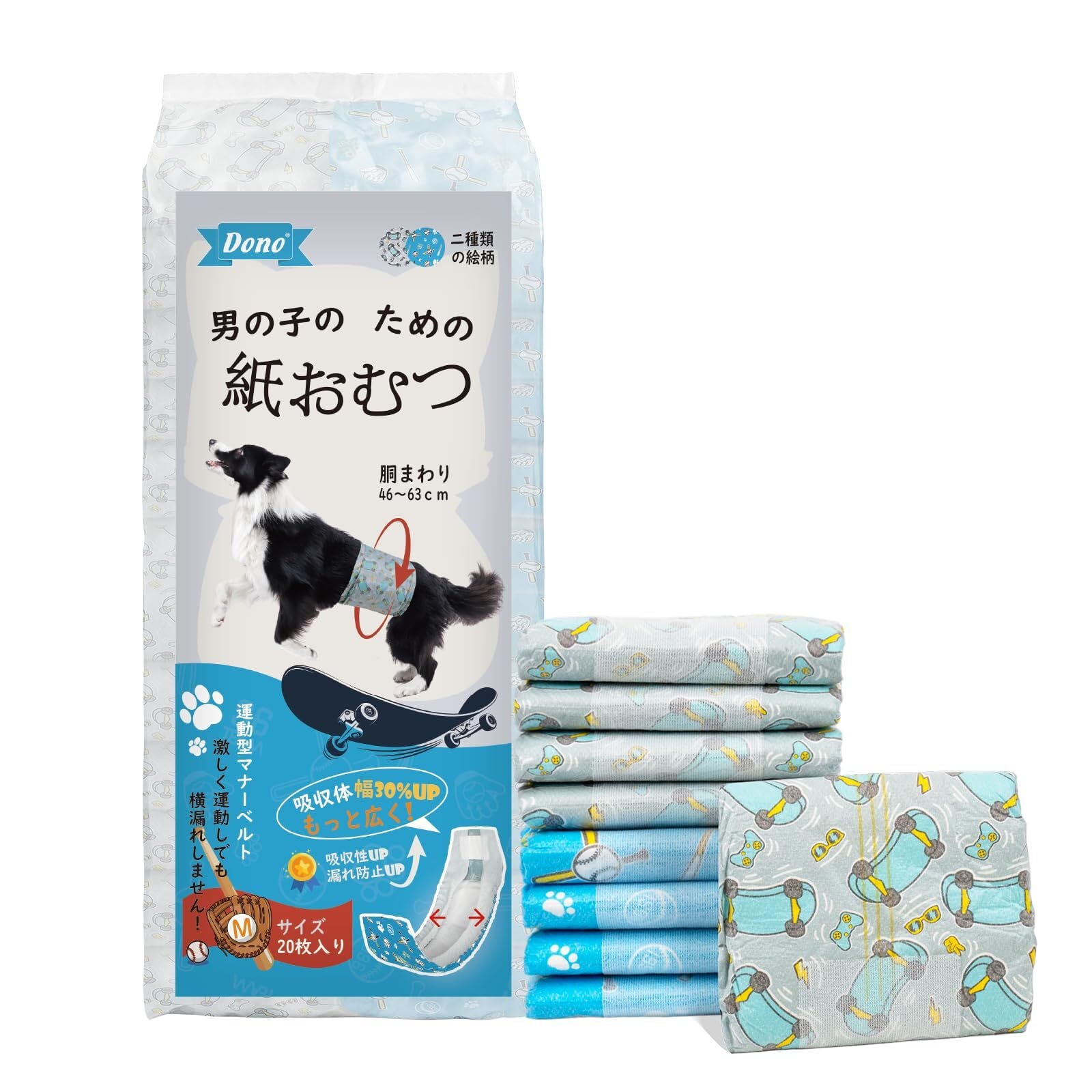 Dono 犬 おむつ 男の子用マナーベルト 幅拡大 お知らせラインつき 2色運動型犬オムツ 長時間高吸収通気性 おもらし対策 介護 マーキング防止 オス犬用おむつカバー 蒸れなくずれにくい 使い捨て マナーパンツ 小型犬 中型犬 大型犬 腹巻きマナーおむつ Mサイズ 40枚入り