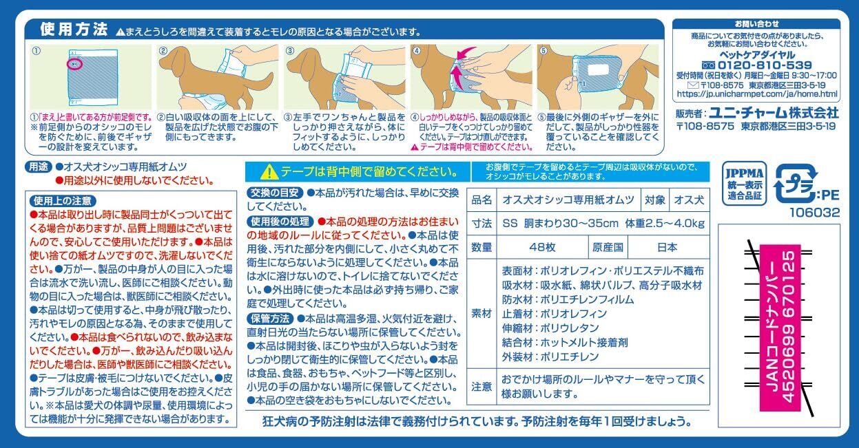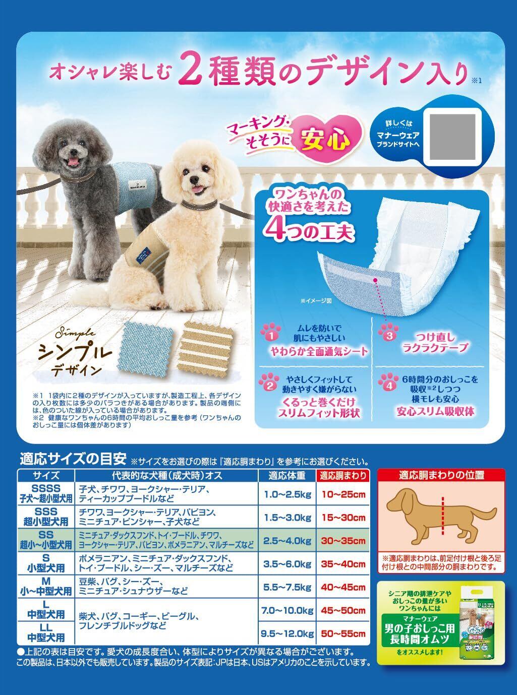 イヌ専用:犬用マナーウェアとして、イヌのそそうに最適化されています。