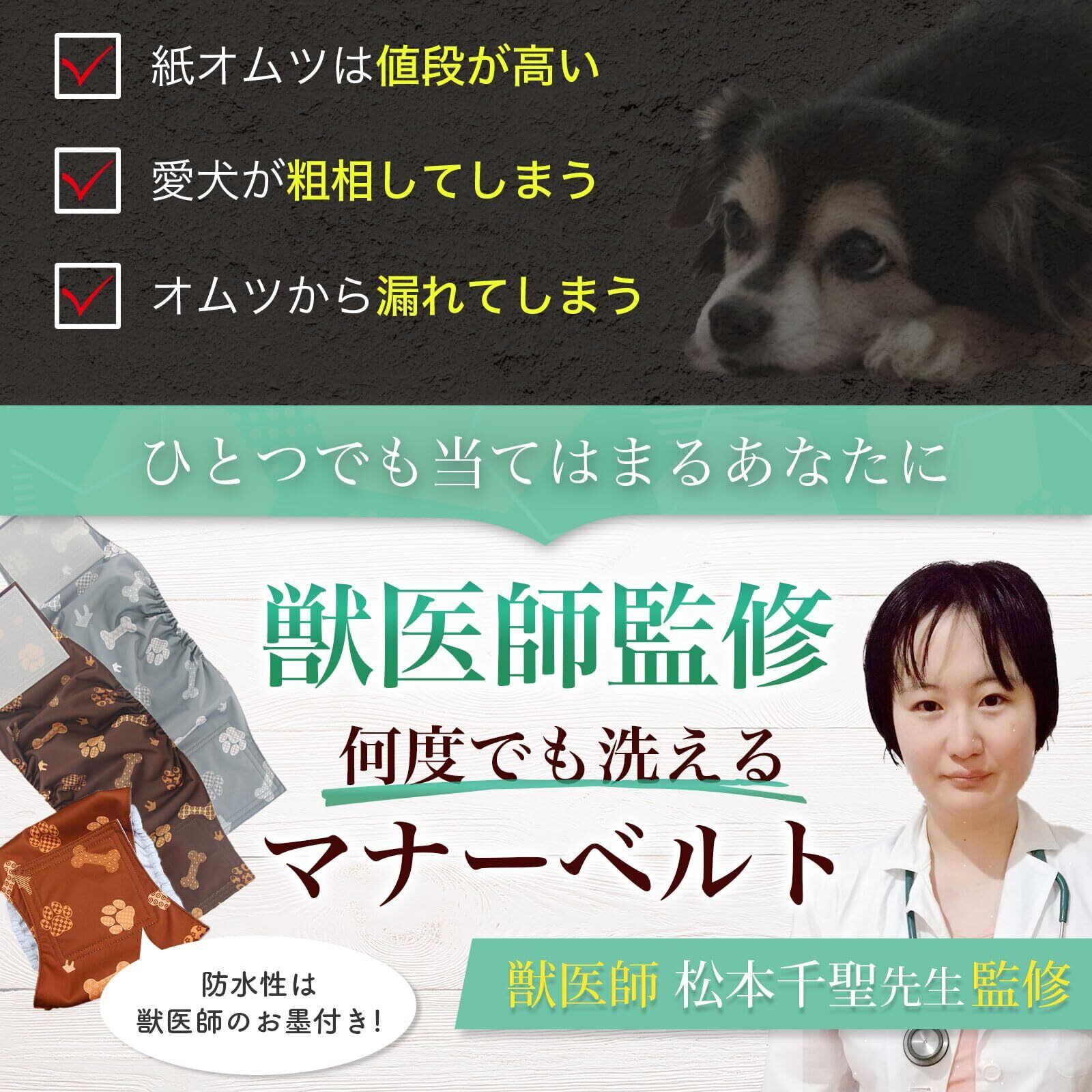 【獣医師監修のマナーベルト】マーキングやおもらし対策、介護時などに大活躍の漏れにくいマナーベルトです。吸水層付きで漏れをしっかりガード。色の違う3枚のセットになっており、見た目の可愛さもポイントです。XS、S、Mの3サイズ用意いたしましたので、ワンちゃんのサイズに合わせてお選びください。