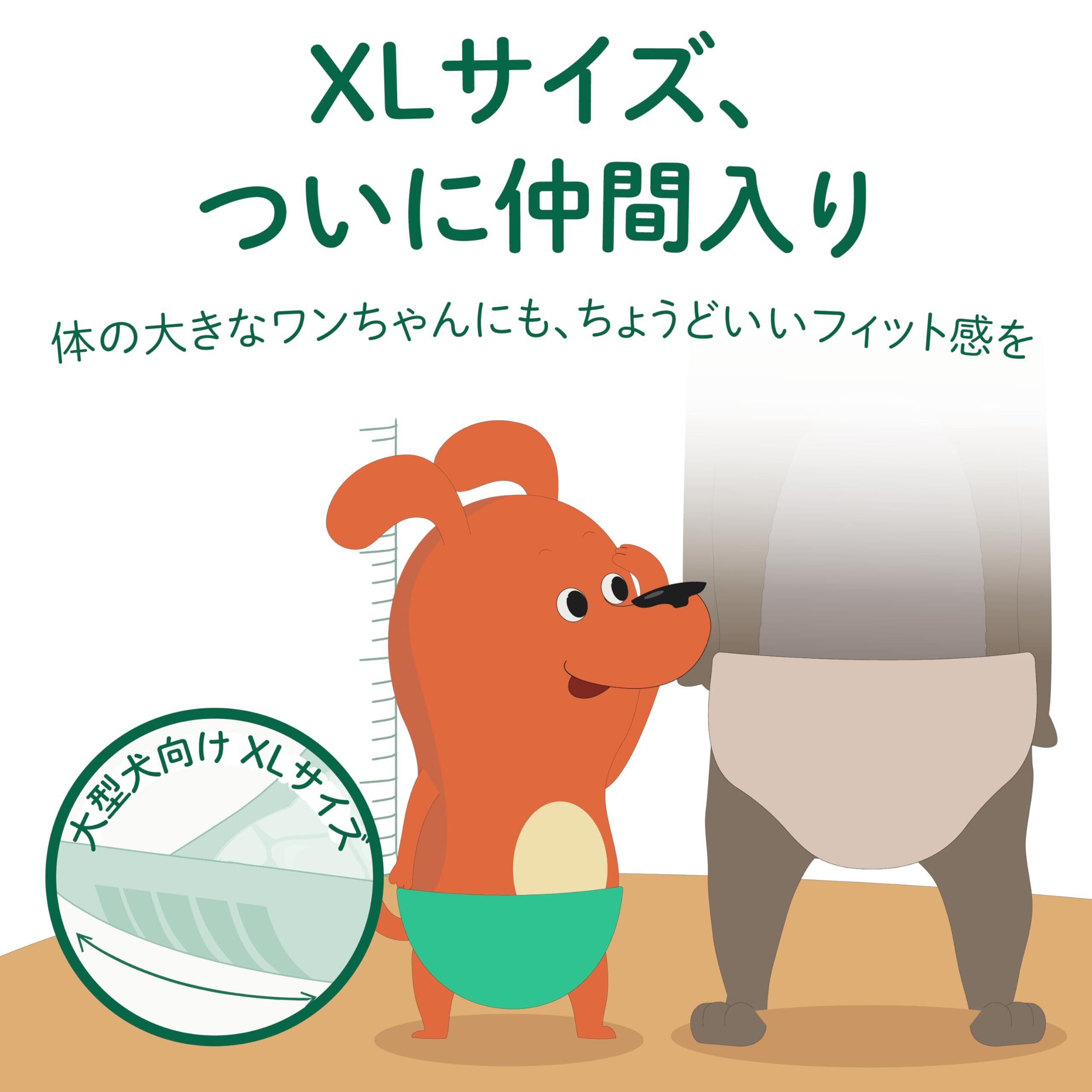全犬種に対応︕選べる4サイズ展開 : XS~Lサイズまで揃っており、体型に合わせてぴったりフィット。おむつの寿命を伸ばし、モレも軽減します。
