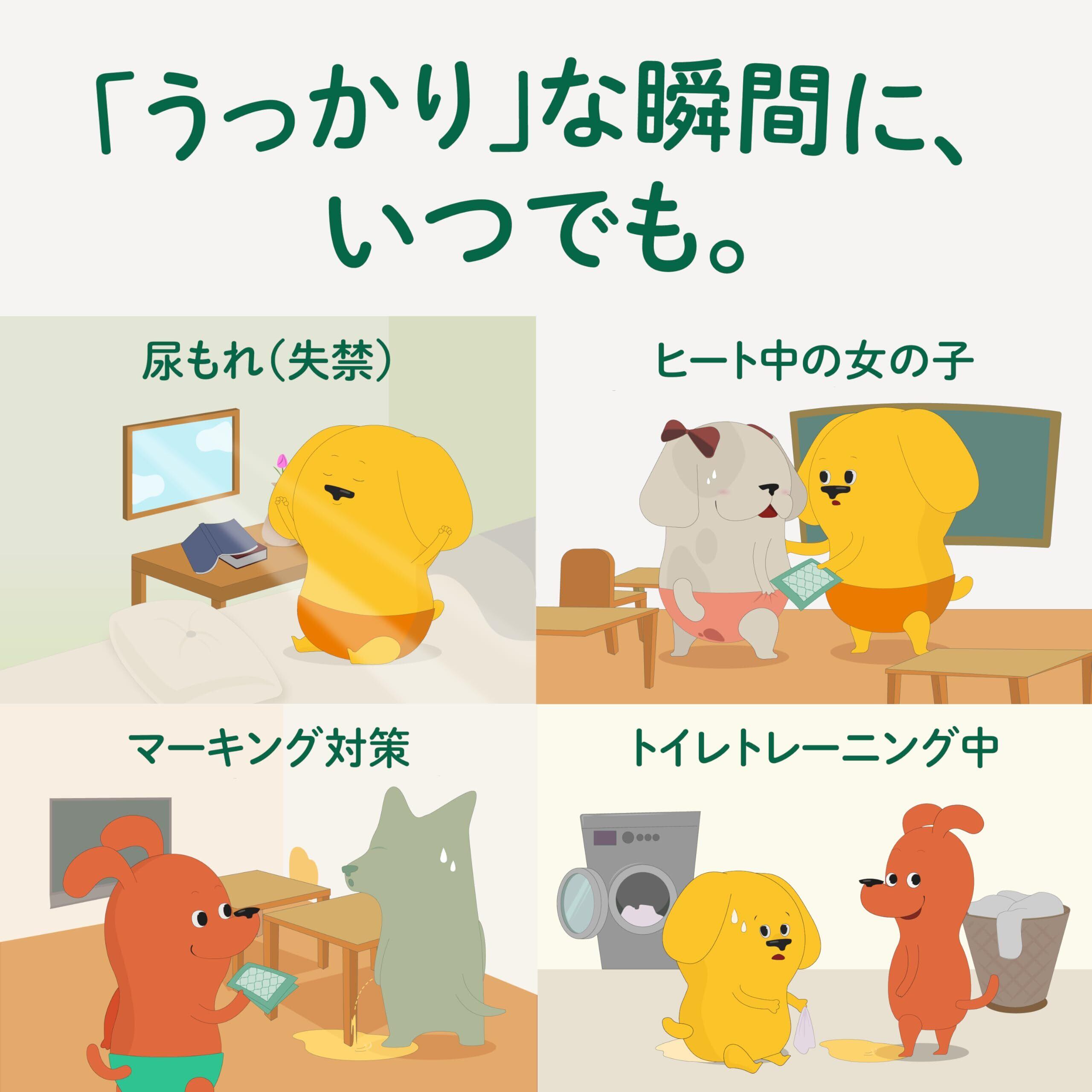 日常からお出かけまで、さまざまなシーンで活躍 : シニア犬やヒート中の女の子、マーキング癖のある男の子など幅広く対応。外出時や旅行、術後ケアにも便利です。