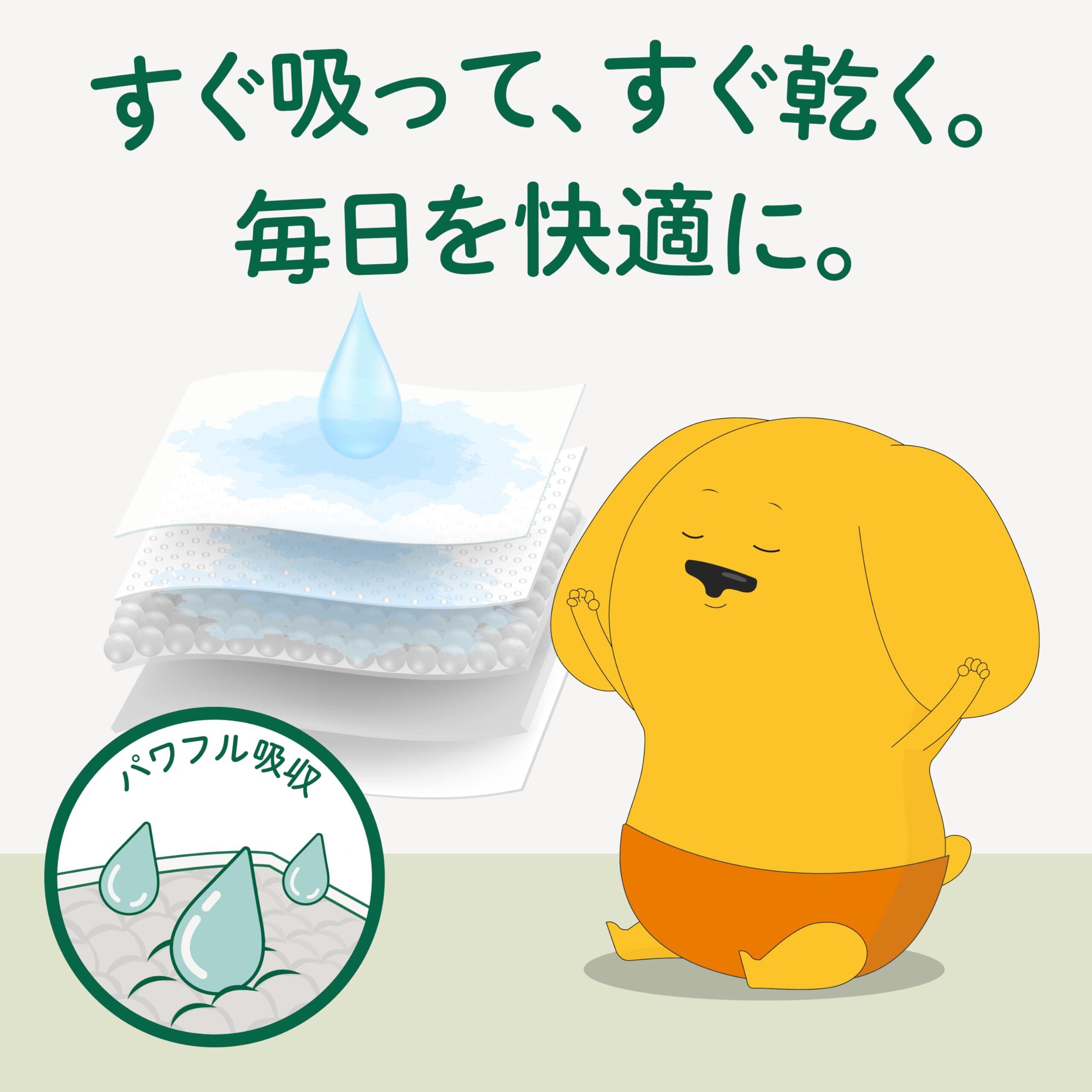 おうちの清潔をキープ︕高吸収でモレ防止 : 特殊な高吸収ポリマー(日本ブランドSumitomo製)を採用し、瞬時に尿をジェル化。床やベッド、ソファなどへの漏れをしっかり防ぎます。