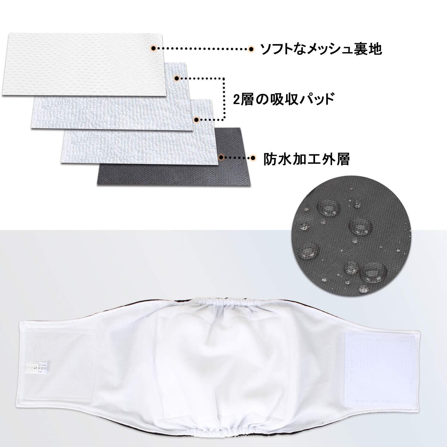 ソフトで快適:このマナーベルトは防水加工の生地を採用して、中身に吸収パッドが縫い付けられています。柔らかいメッシュ裏地で、肌触りが良く通気性もあります。