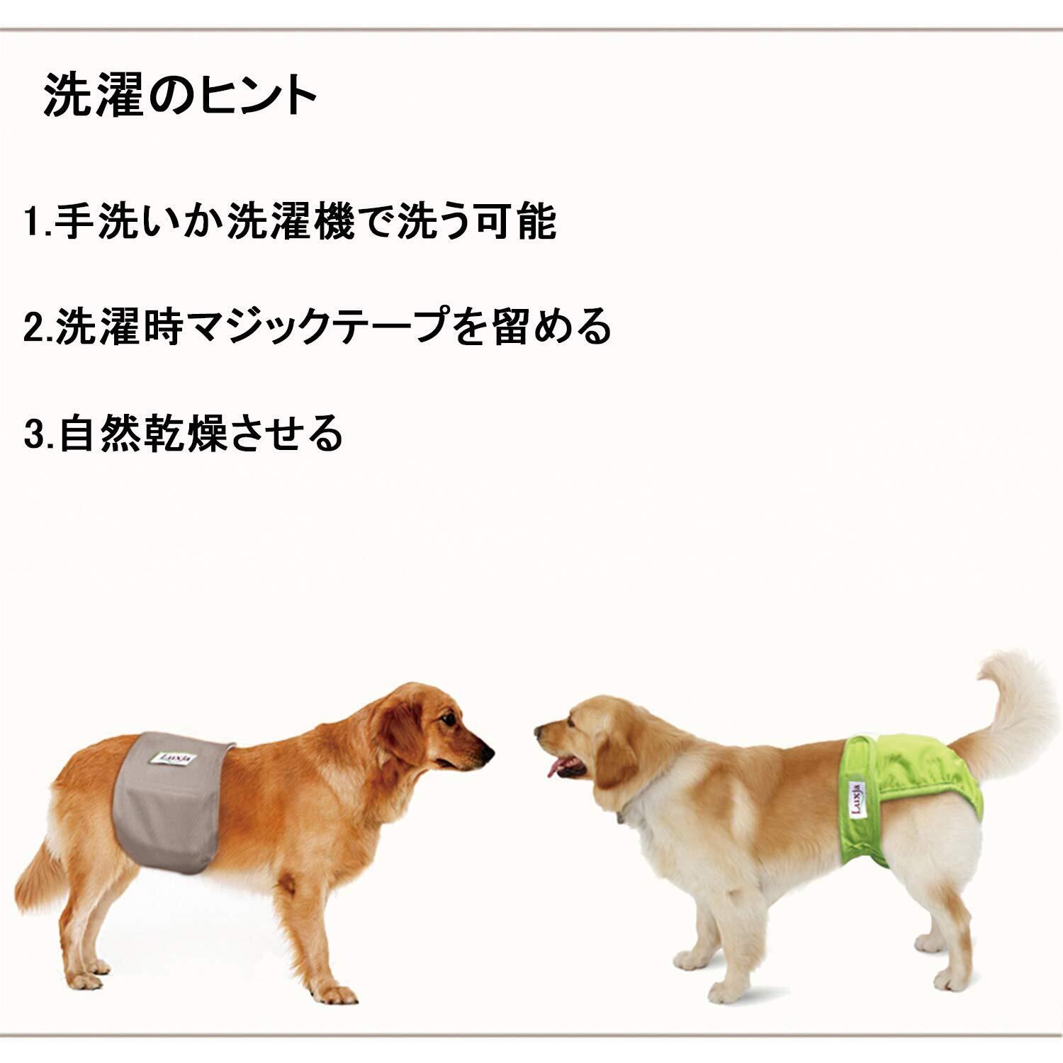フィット感:大きな正方形のマジックテープは愛犬の体型に合わせた位置でしっかりと止めます。 弾性エッジは体にフィットして着用時のずり落ち・漏れを防ぎます。