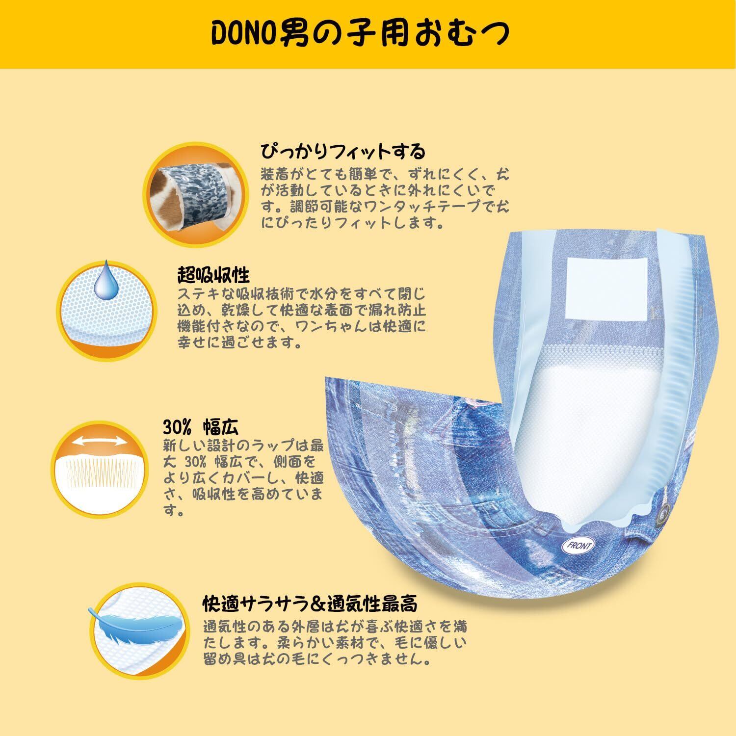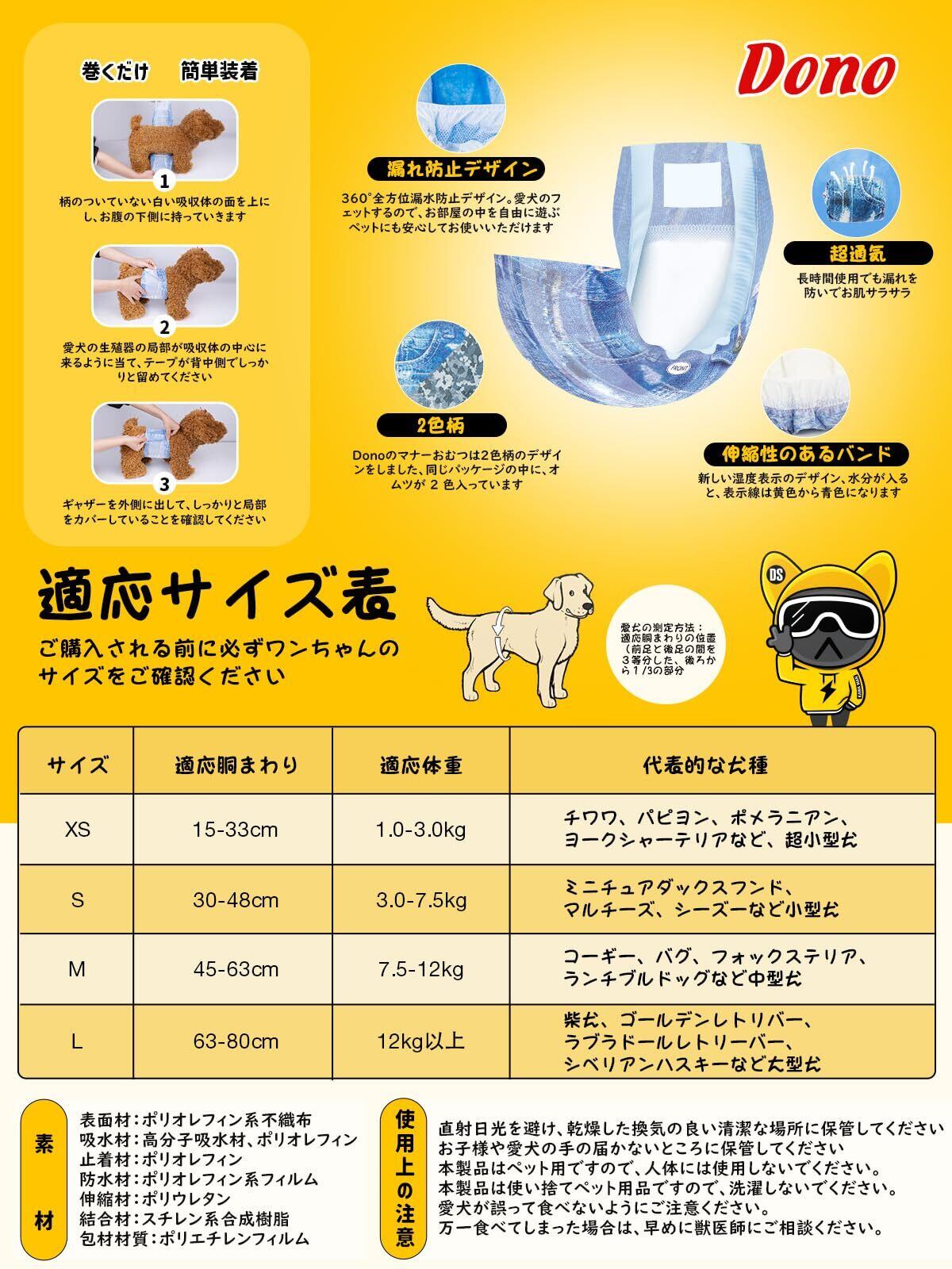 Dono 犬用オムツ 男の子用マナーベルト 幅広ウエスト 2色柄犬用おむつ 男の子用犬腹巻超吸収性 横漏れ防止設計使い捨て犬オムツ おもらし対策 マーキング対策マナーウェア 介護 子犬 成年犬 高齢犬用 sサイズ48枚入り