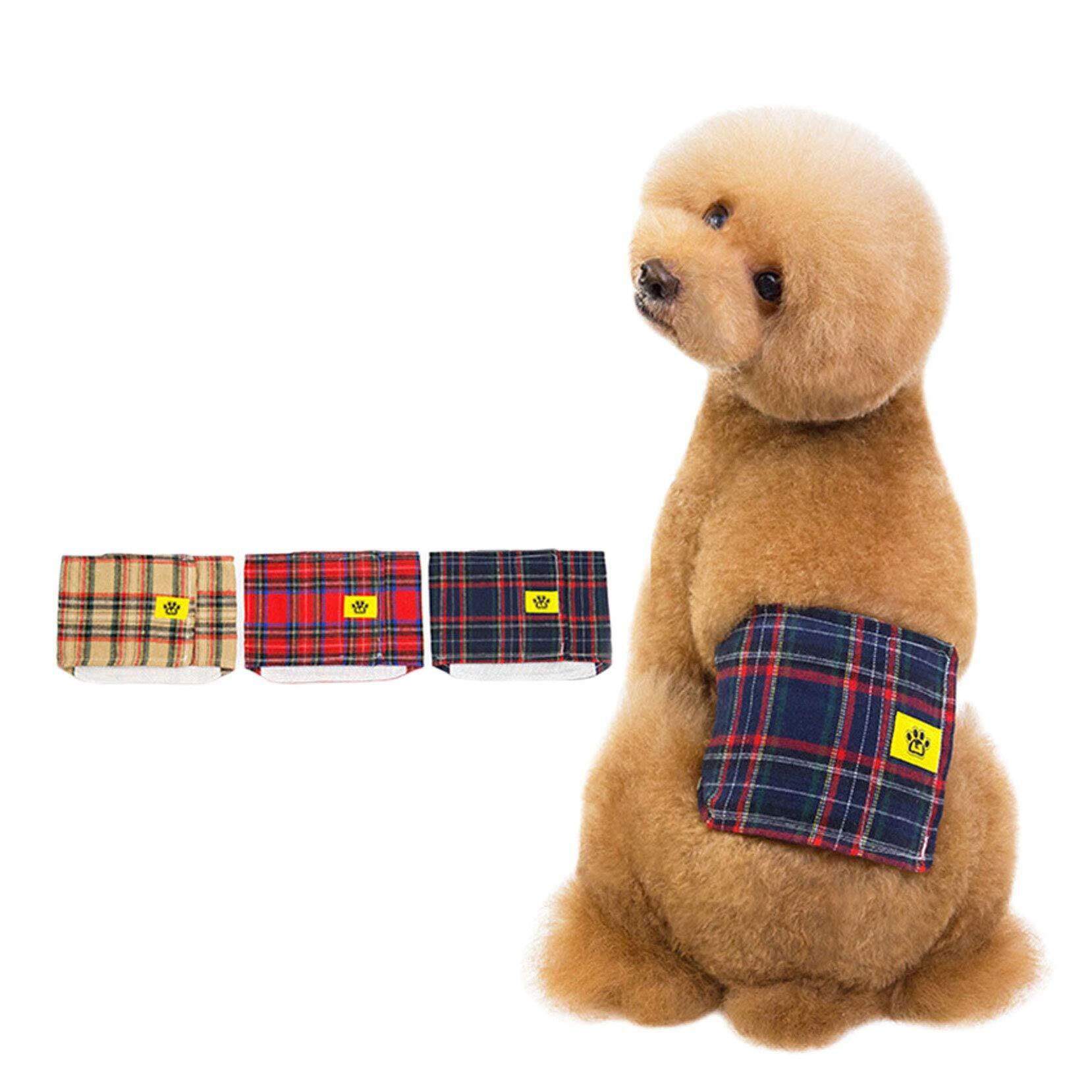 ふく福 ペット犬用 マナーバンド 犬のおむつ マナーパンツ 快適な腹巻き 男の子用 再利用可能 失禁 おしっこ 老 犬 介護 嫌がらせを防ぐ 雄犬 グリッド 柄(1個,色ランダム)(L(40-46CM))