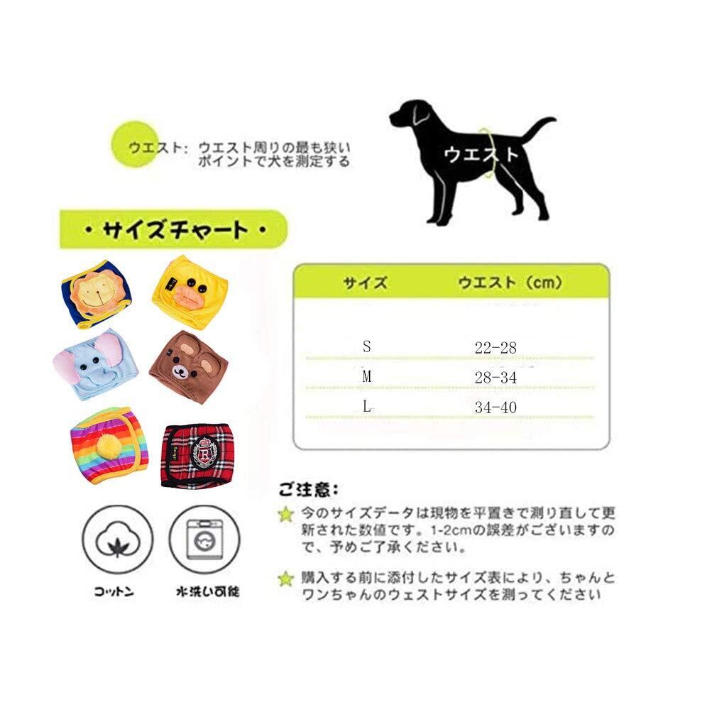 ウエストサイズ:S:22-28CM、0.5~1.5kgのワンちゃんにオススメ/M:28-34CM、2~4kgのワンちゃんにオススメ /L:34-40CM、4.5~6.5kgのワンちゃんにオススメ