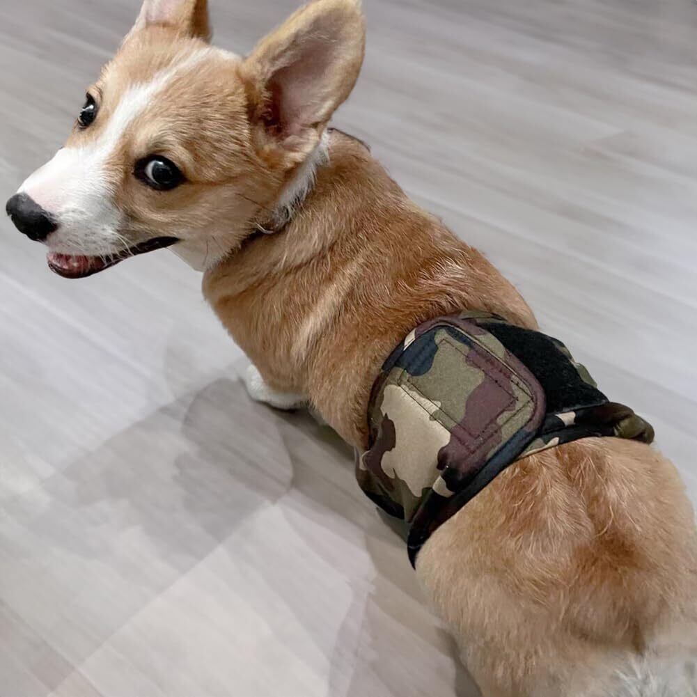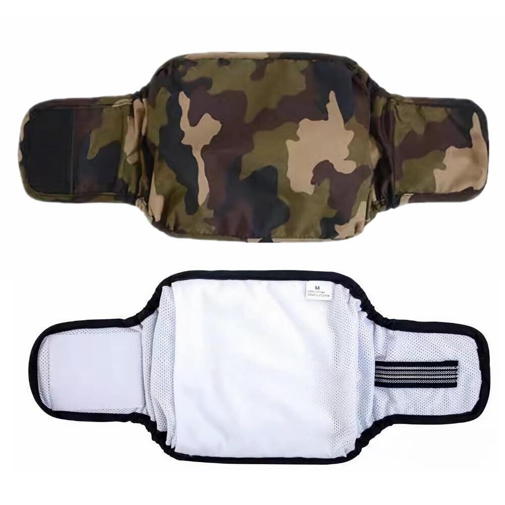 KUVEELA PET 犬用マナーベルト 雄犬用おむつ 犬用オムツカバー 男の子 お散歩 お外出 室内 おでかけ 介護 発情期 通気性 吸水性良い 再利用可能((新)迷彩 M)