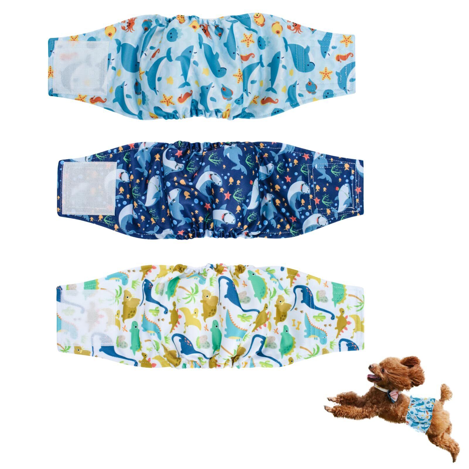 SLEEKSTATION 犬用 マナーベルト 犬用おむつ 3点セット 男の子 マーキング防止 メッシュ裏地 お漏らし対策 防水加工 ウェストサイズ調整可能 吸収性 洗える オス オムツ 中小型犬用 老犬 尿対策 介護用 Mサイズ