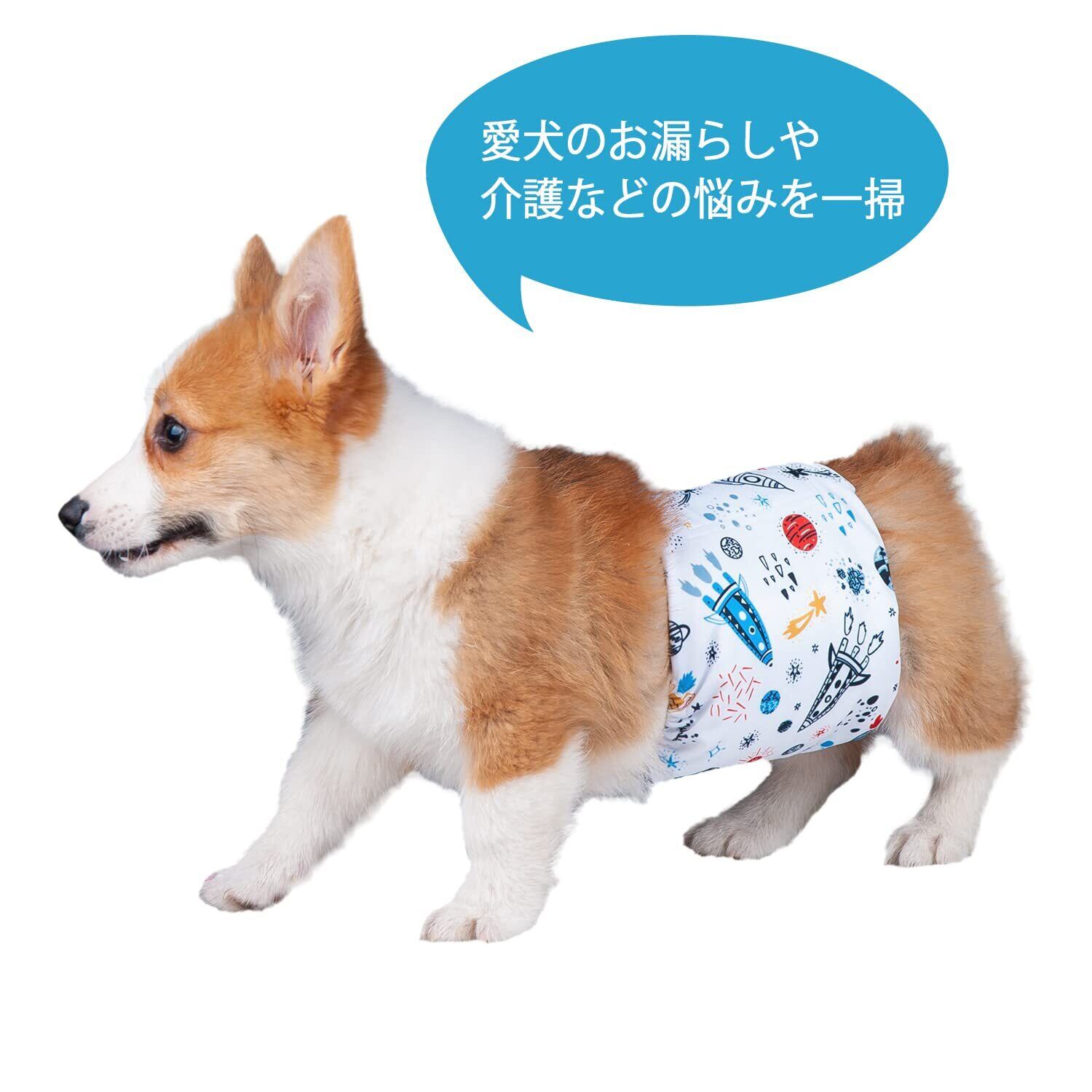 犬マナーベルト 犬用おむつ 男の子用 紙おむつ 犬猫兼用 お漏らし対策 介護用 マーキング防止 腹巻風 防水加工 メッシュ裏地 吸収層付き 3点セット (スペース, Mサイズ)