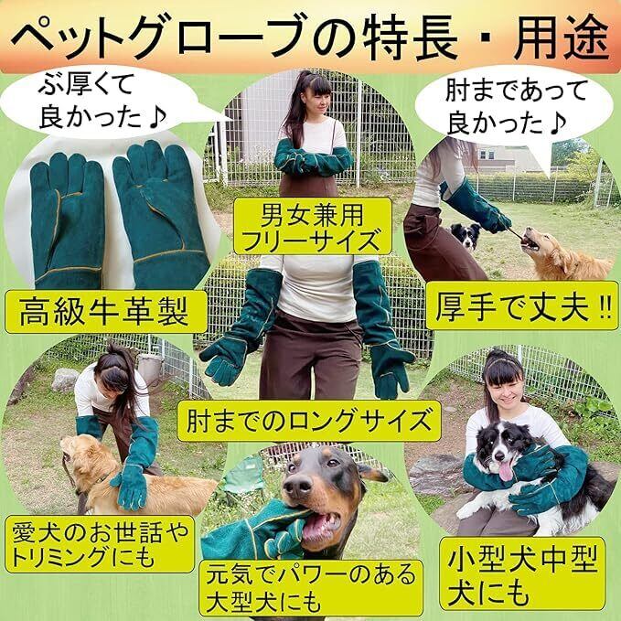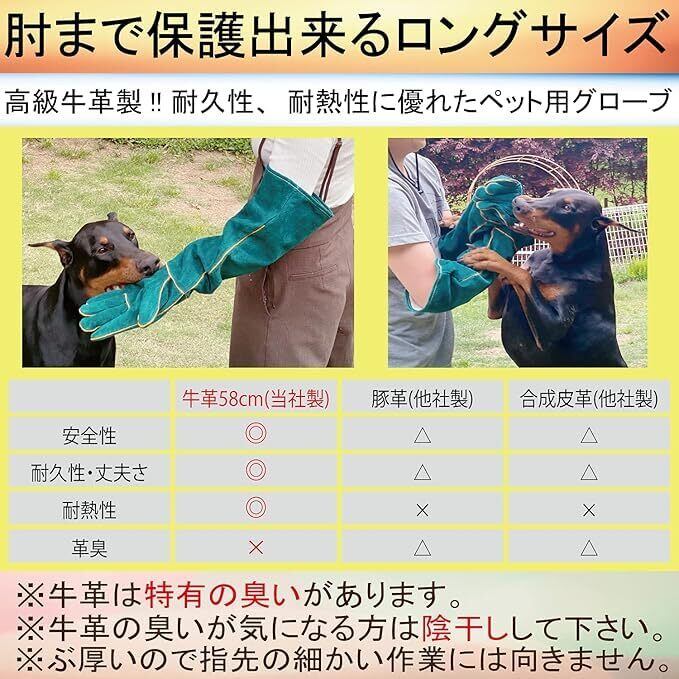 [DROGIA] ペットグローブ 60cm 犬のスペシャリスト監修 噛みつき防止 引っ掻き 保護 手袋 厚手 ロング 牛革 犬 猫