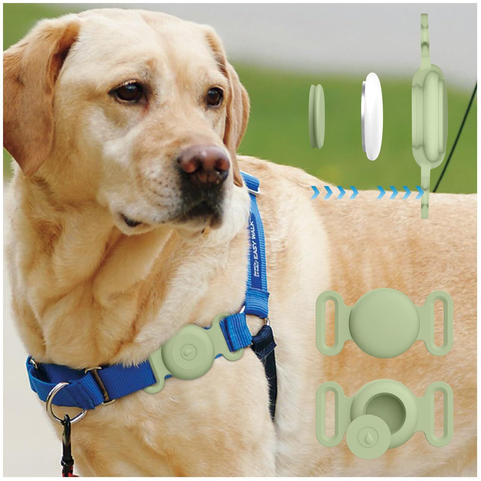 YGTBSR Airtag ケース Airtag ホルダー ペット 犬 猫用 防水 傷つきにくい 軽量 紛失防止シリコン エアタグホルダーケースと互換性あり ペット 猫 犬 リードバッグ バックパック 財布 鍵 荷物 (S, 抹茶グリーン)