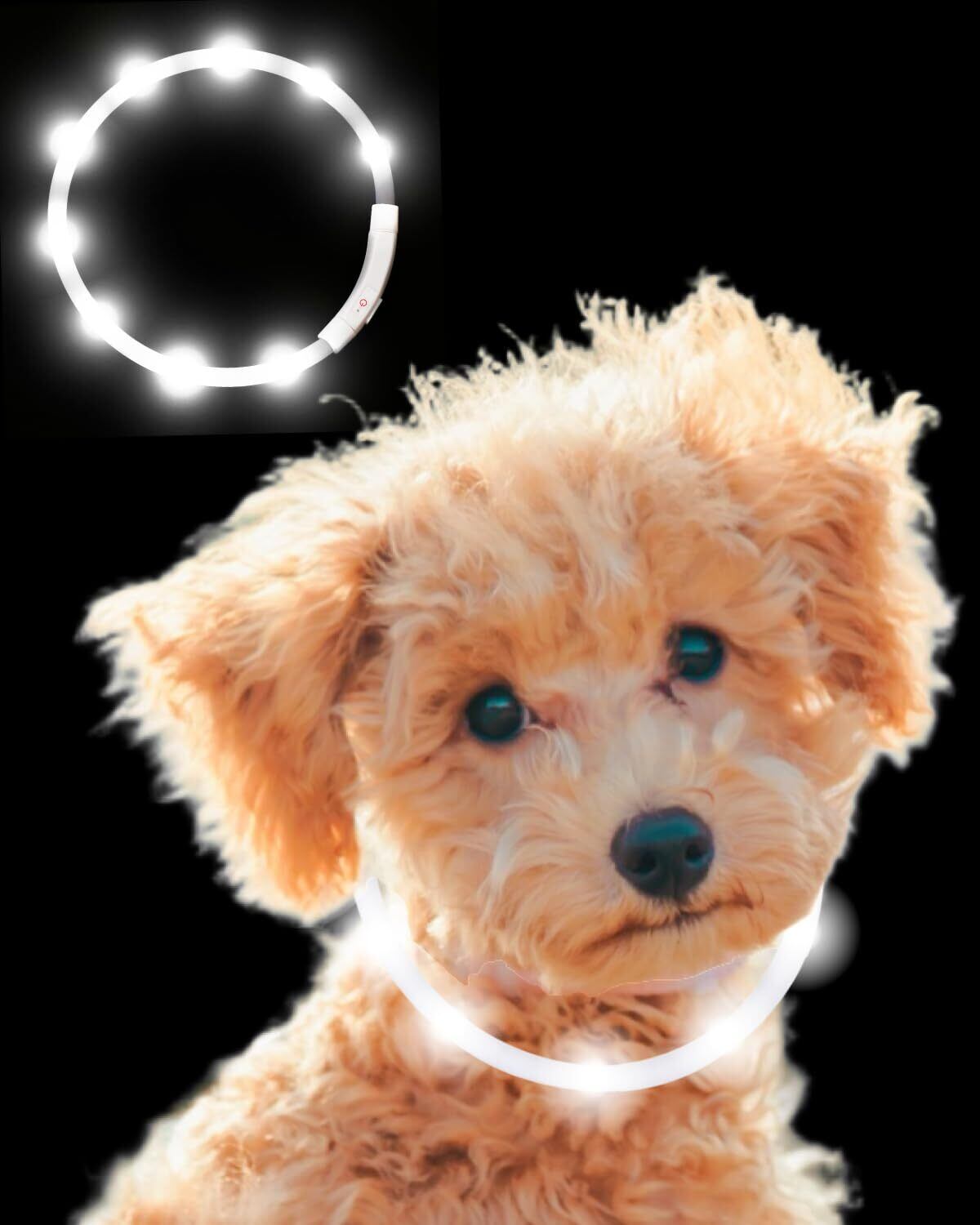 【獣医歴25年の獣医師監修】Qbit LED 光る首輪 70cm 【ペットに優しい素材】 犬 猫 ライト 夜 散歩 USB充電式 Type-C 小型犬 中型犬 大型犬 サイズ調節可能 (ホワイト 70cm)