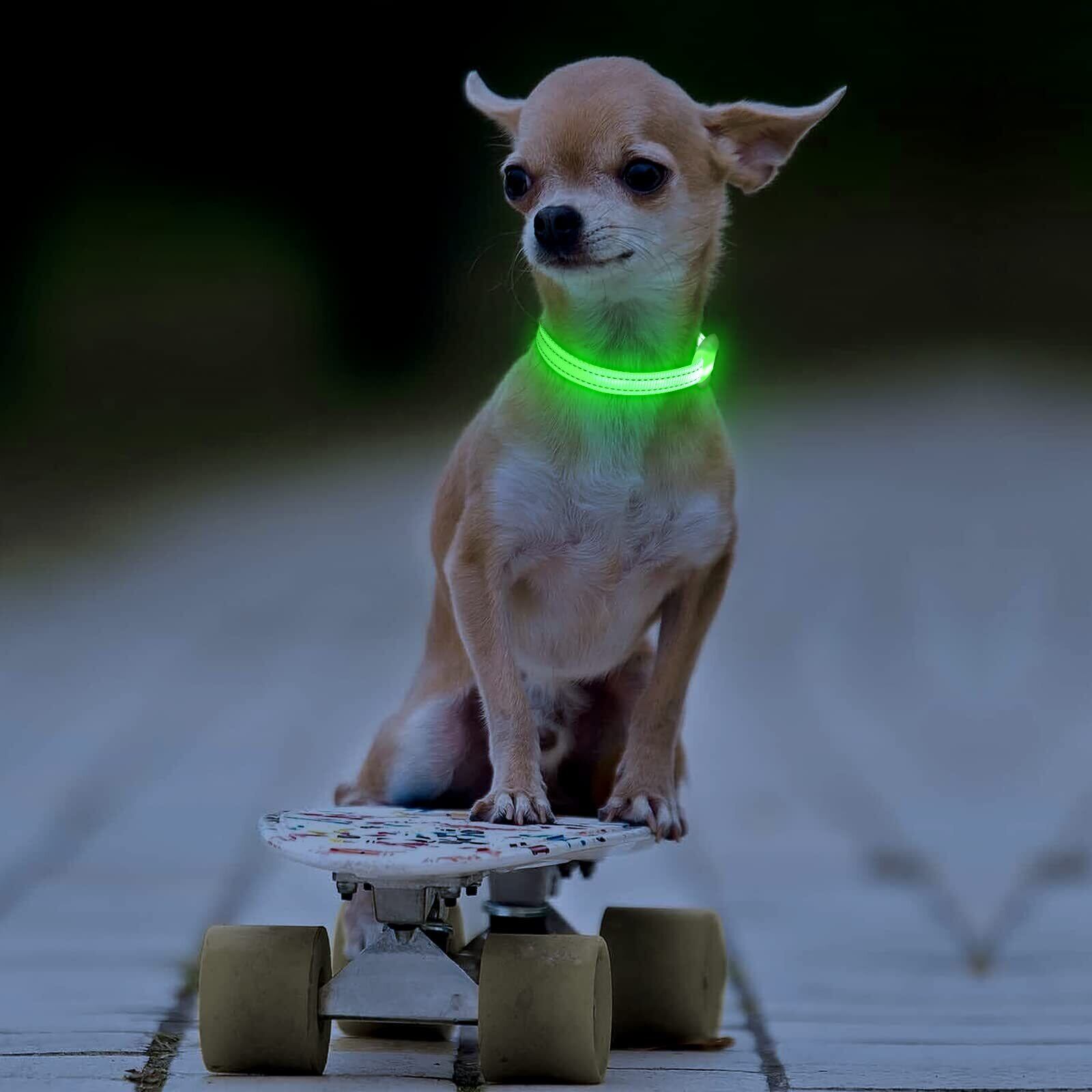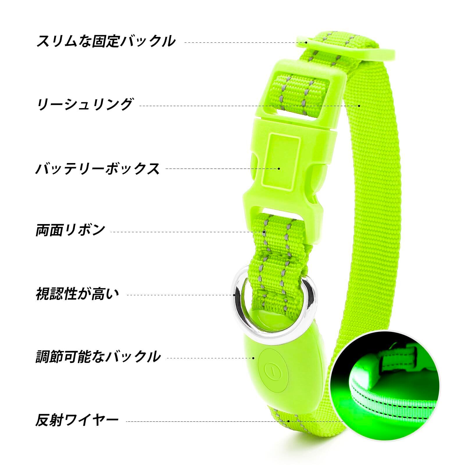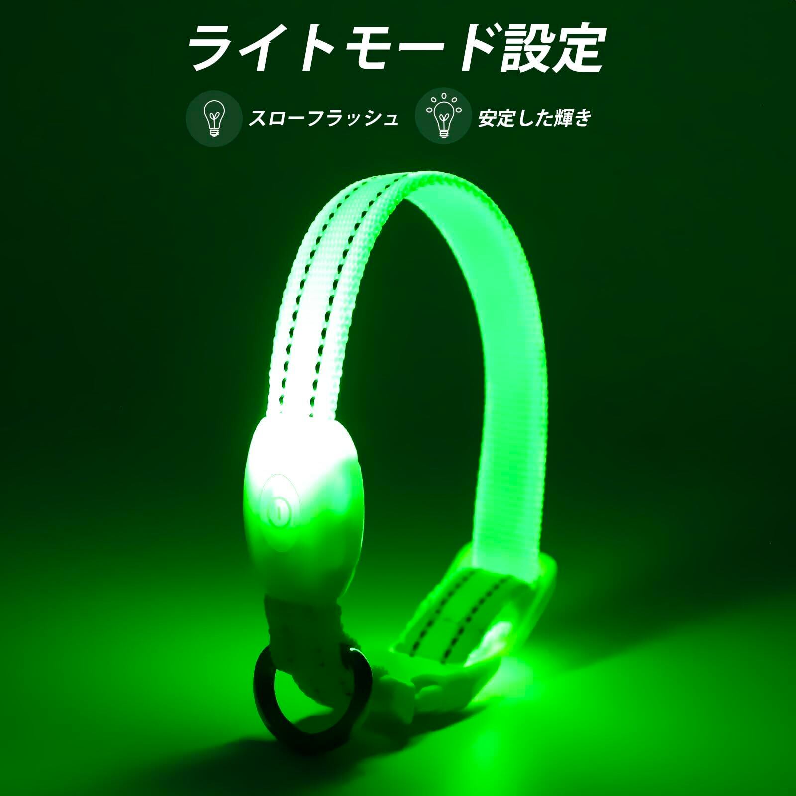 Visinite LED光る首輪, 小型犬 散歩 ライト USB充電式, 子犬や猫に適した調節可能な長さ,軽量, 暗い犬 首輪 光る300m先から目視可能, 犬 ライトるあなたに小さな犬や猫を目に見えて安全に保つ, グリーン