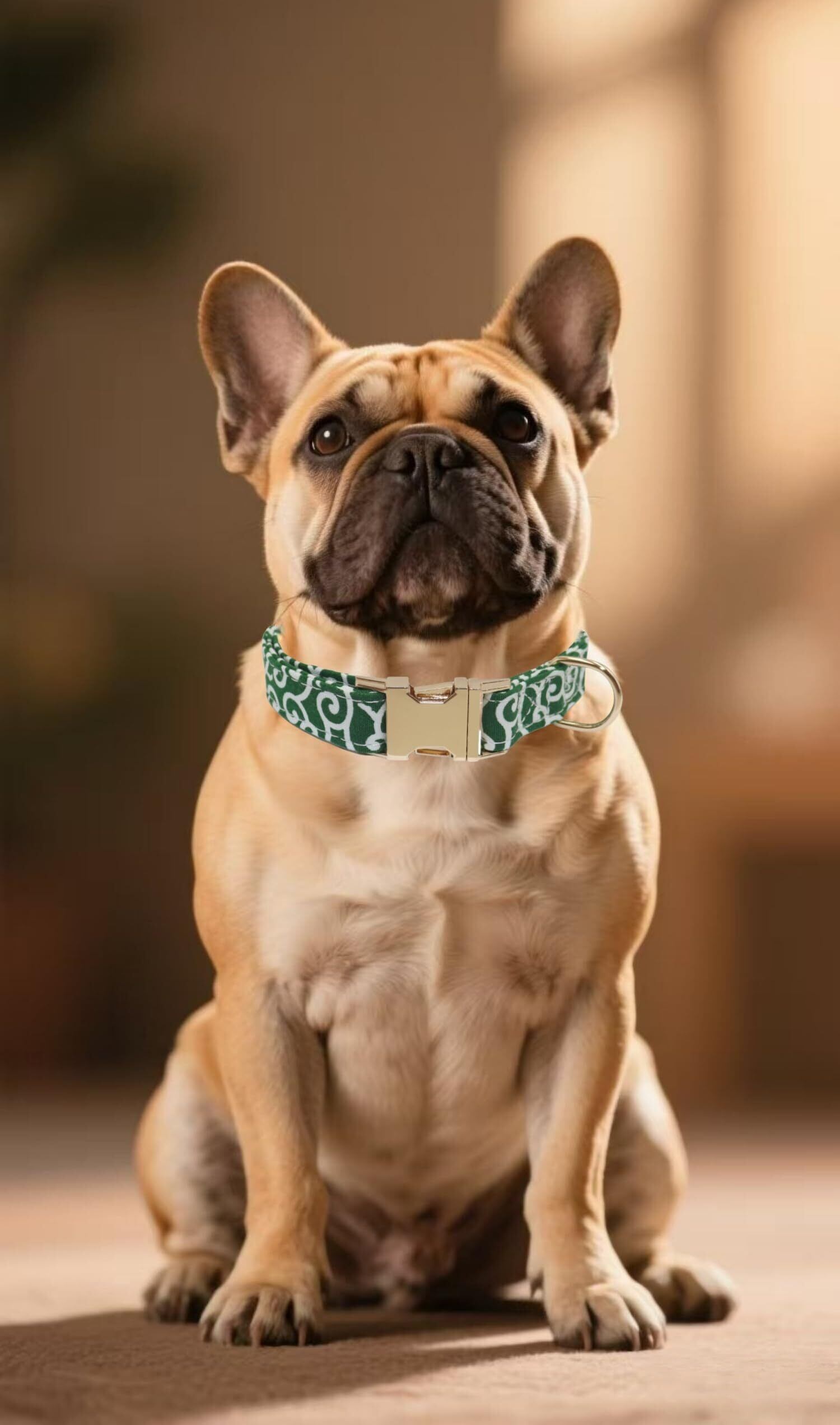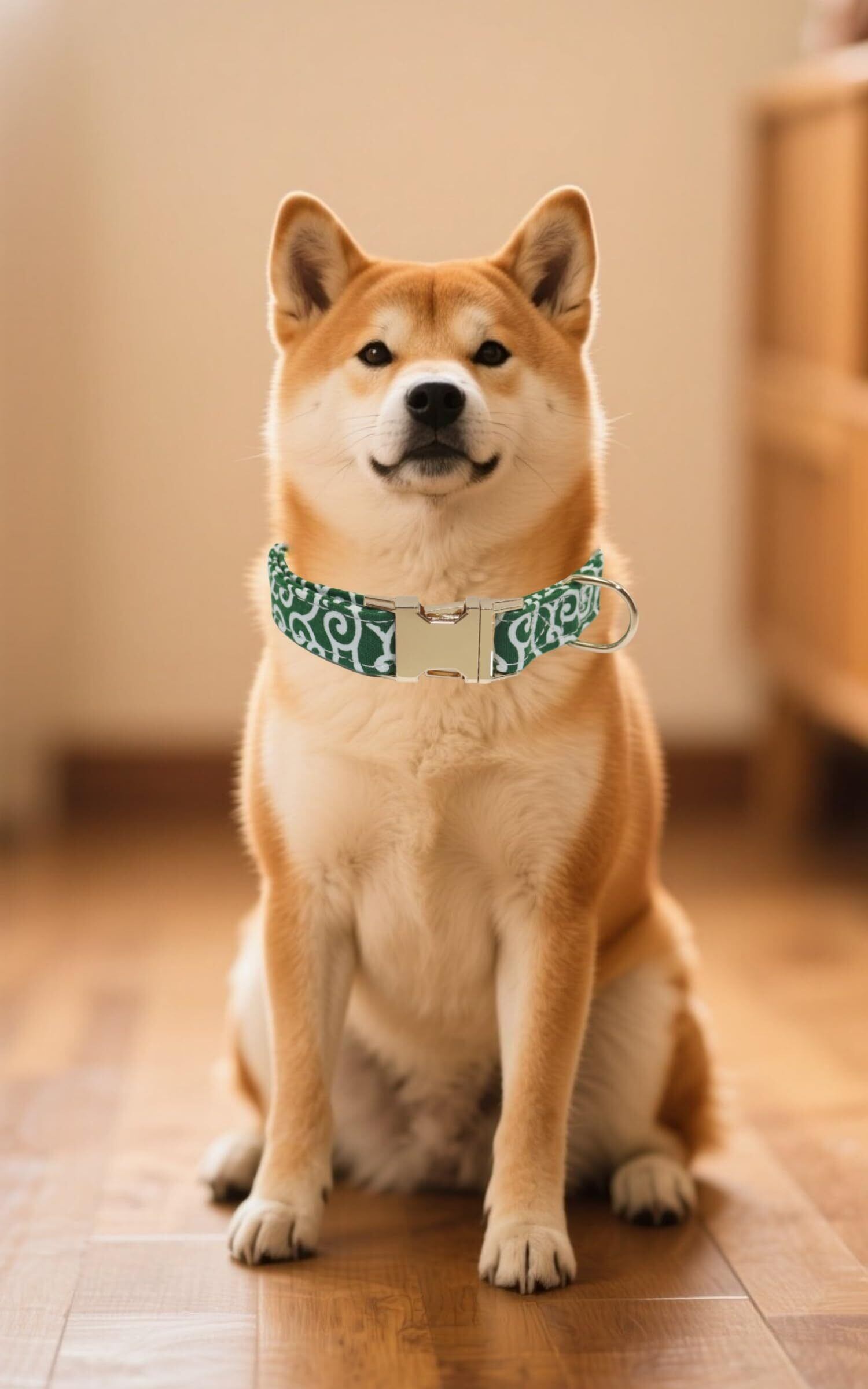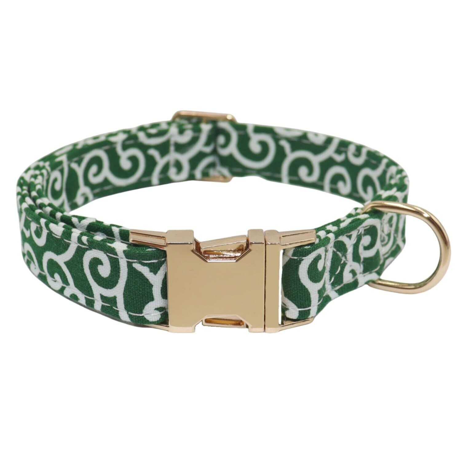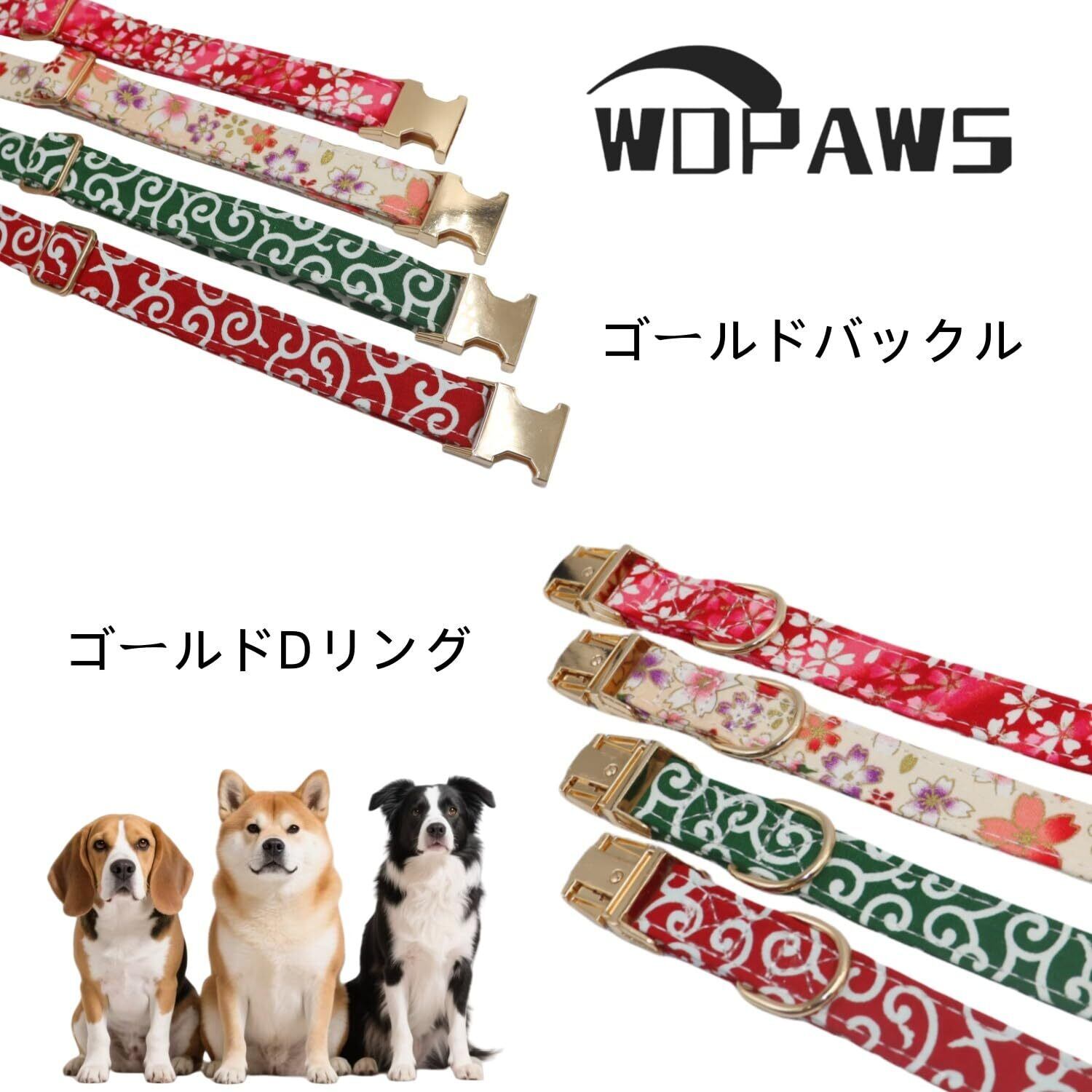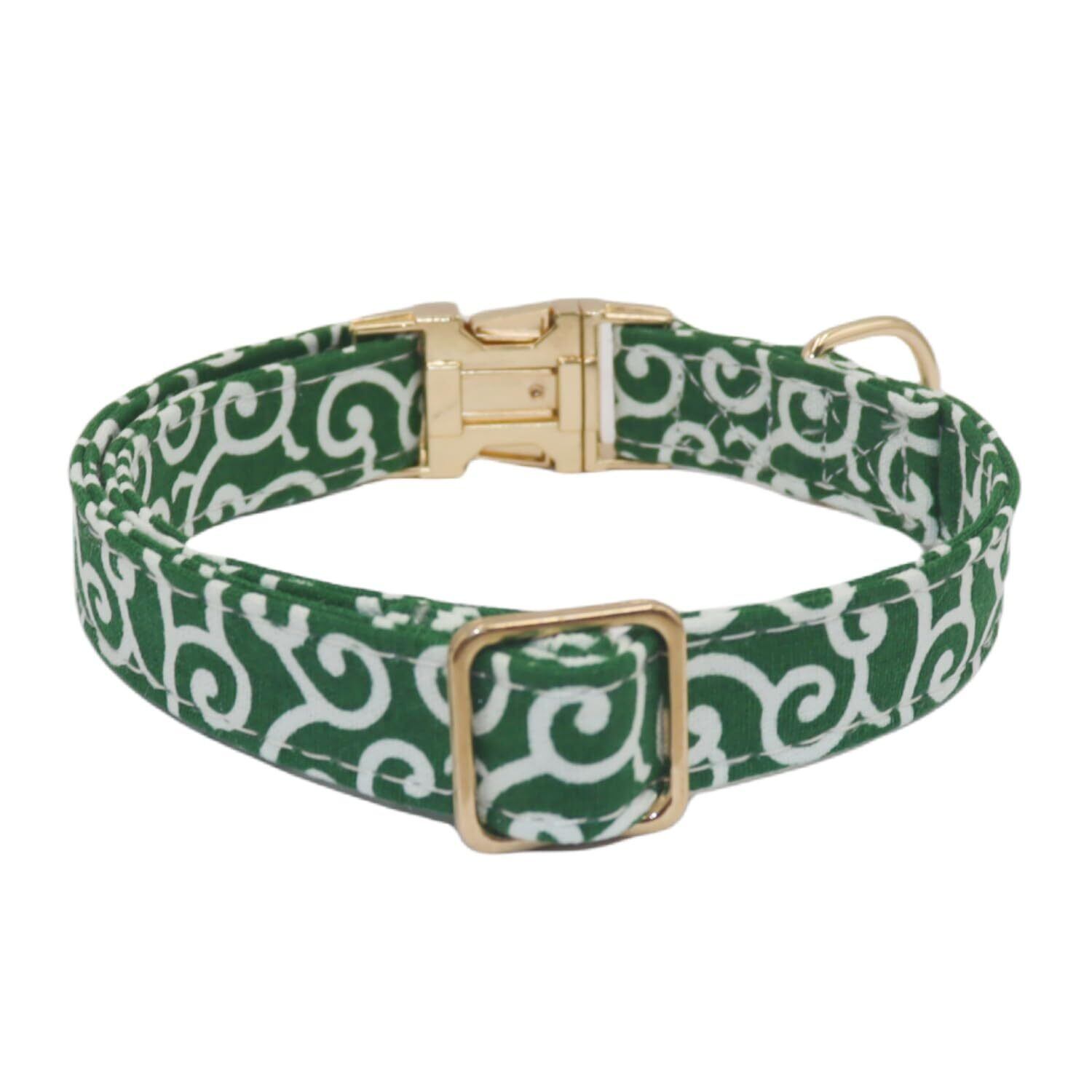 WDPAWS 犬 首輪 おしゃれな唐草模様 布製 ペット首輪 中大型犬用(唐草模様緑 M)