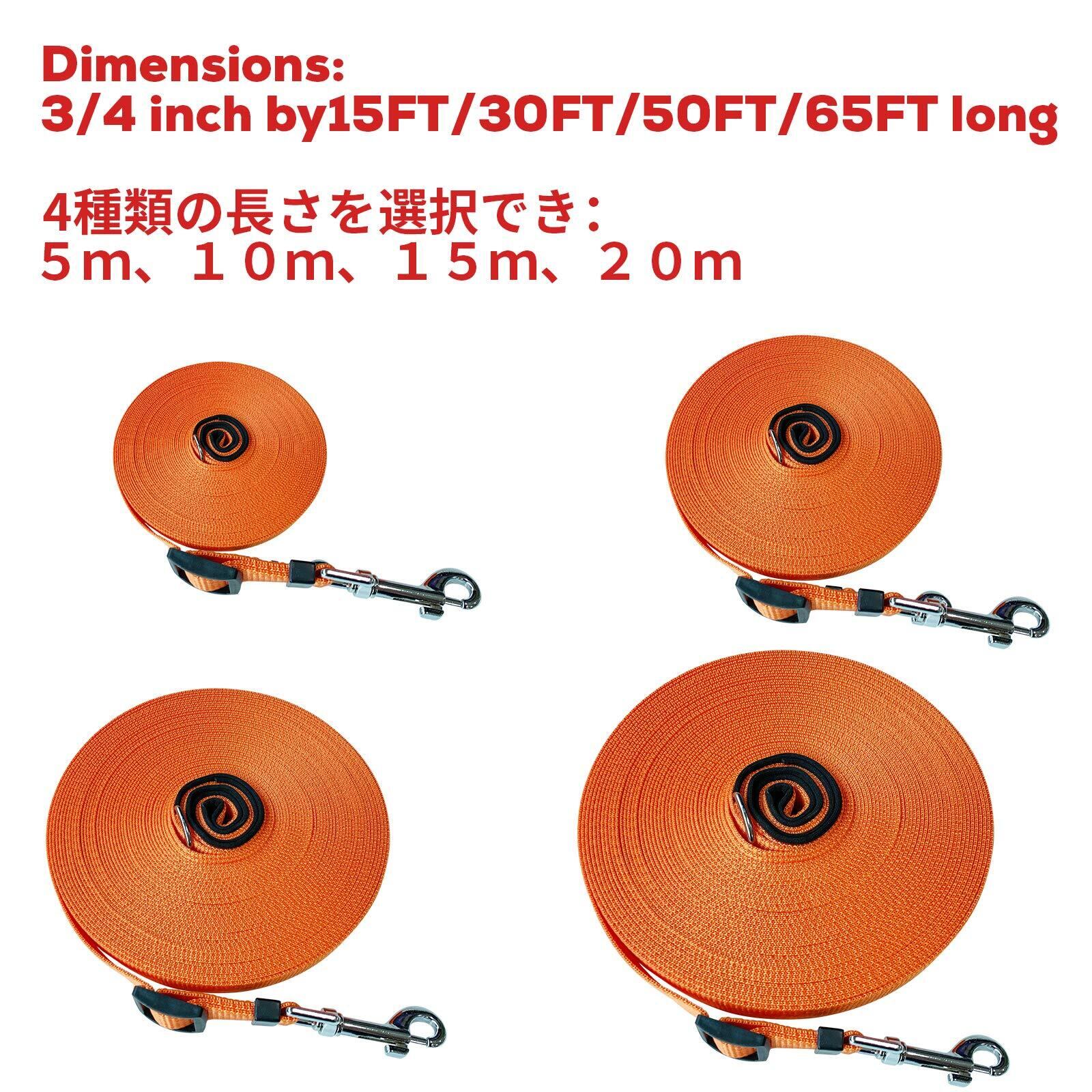 【長い犬用リード・幅広い適用性】 ロープの長さは5m、10m、15m、20mを選択できます、5mと10mのロングが小型犬に対応し、中型犬と大型犬に対して、15mと20mのロングをお勧めします。ロープ径:約8mm、耐荷重:130kg。