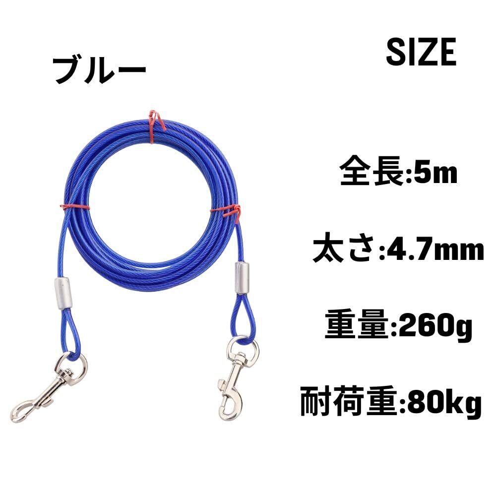 JP Number リード 犬 5m ロングリード 係留 高耐久スチールワイヤー ロープ 小型犬 中型犬 大型犬 (ブルー)