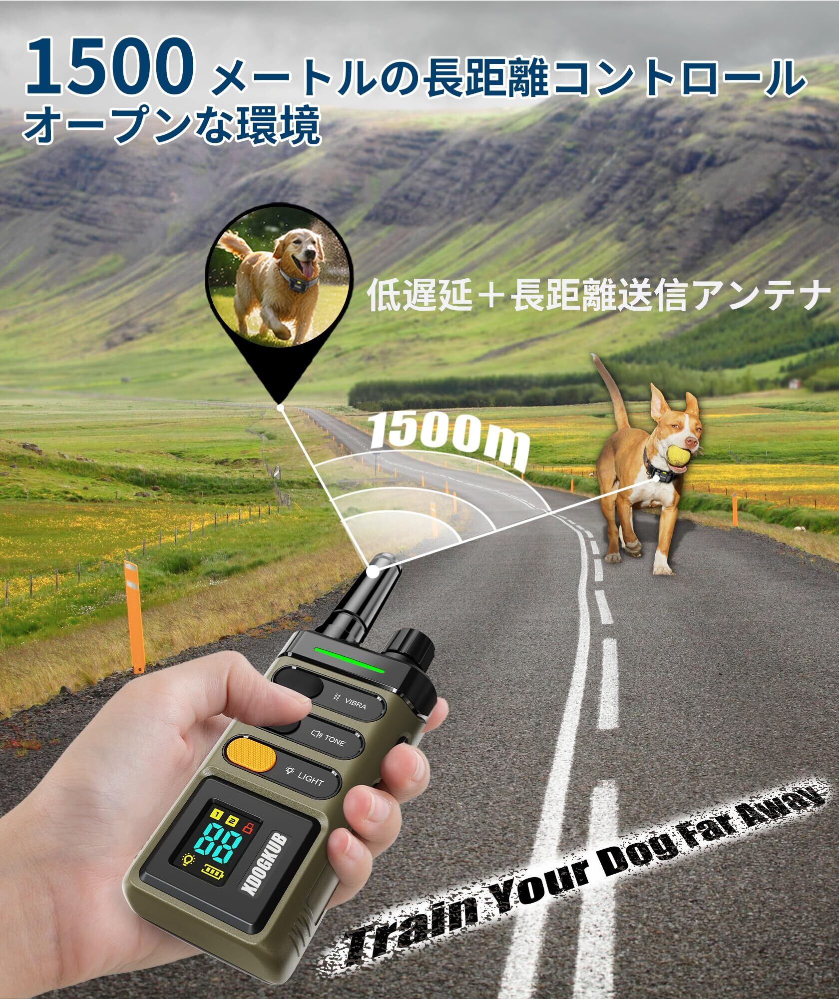 無駄吠え防止首輪 しつけ首輪 吠え防止1500メートル リモコン 4つのトレーニングモード 振動 衝撃 ビープ音高輝度LEDによる充電式 小型犬 中型犬 大型犬用 むだぼえ防止 犬訓練
