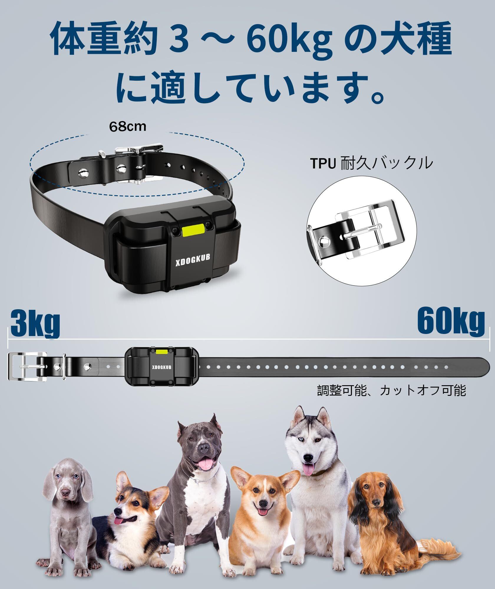 【すべての犬のサイズに適しています】このトレーニング首輪は7〜23インチ(20〜60cm)の犬の首、体重約3~60kg(8~120ポンド)の犬に適しています。大型犬、中型犬、小型犬に適しています。この首輪は75cmのTPUクリップウェビングを使用しており、愛犬を快適に保護しながら、軽量なデザインで愛犬の負担を軽減します。
