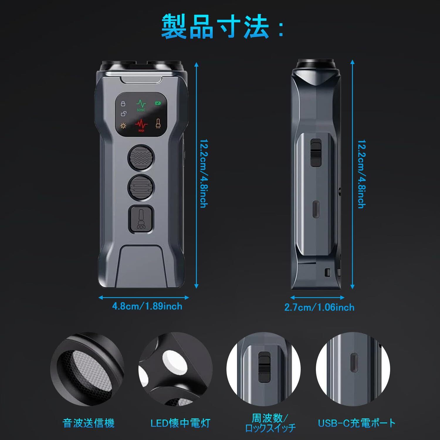 【大きい液晶画面付き】この新製品は大型LCDディスプレイを備えている。サウンドレベル、超音波レベル、バッテリー表示量、懐中電灯表示図がすべて明確に表示されます。使いやすく、操作も簡単