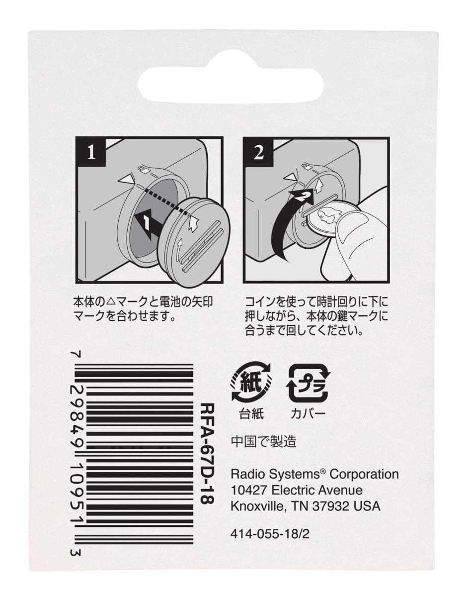 バークコントロールに電池を挿入する際には、電池に表示されている矢印とバークコントロールに表示されている三角形の先端が互いに接するよう配置してください。コインを使って電池を時計回りに回し、矢印が三角形の隣にある鍵マークの地点に来るまで回してください。電池を取り外す際には、コインで電池を反時計回りに回すと電池が緩みます。
