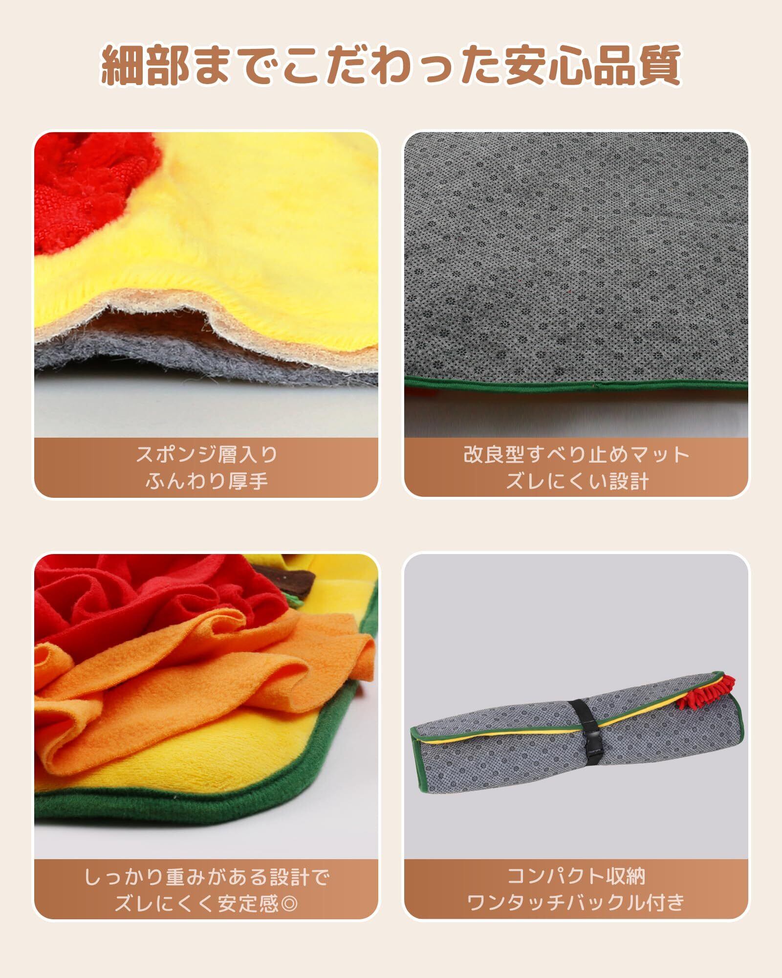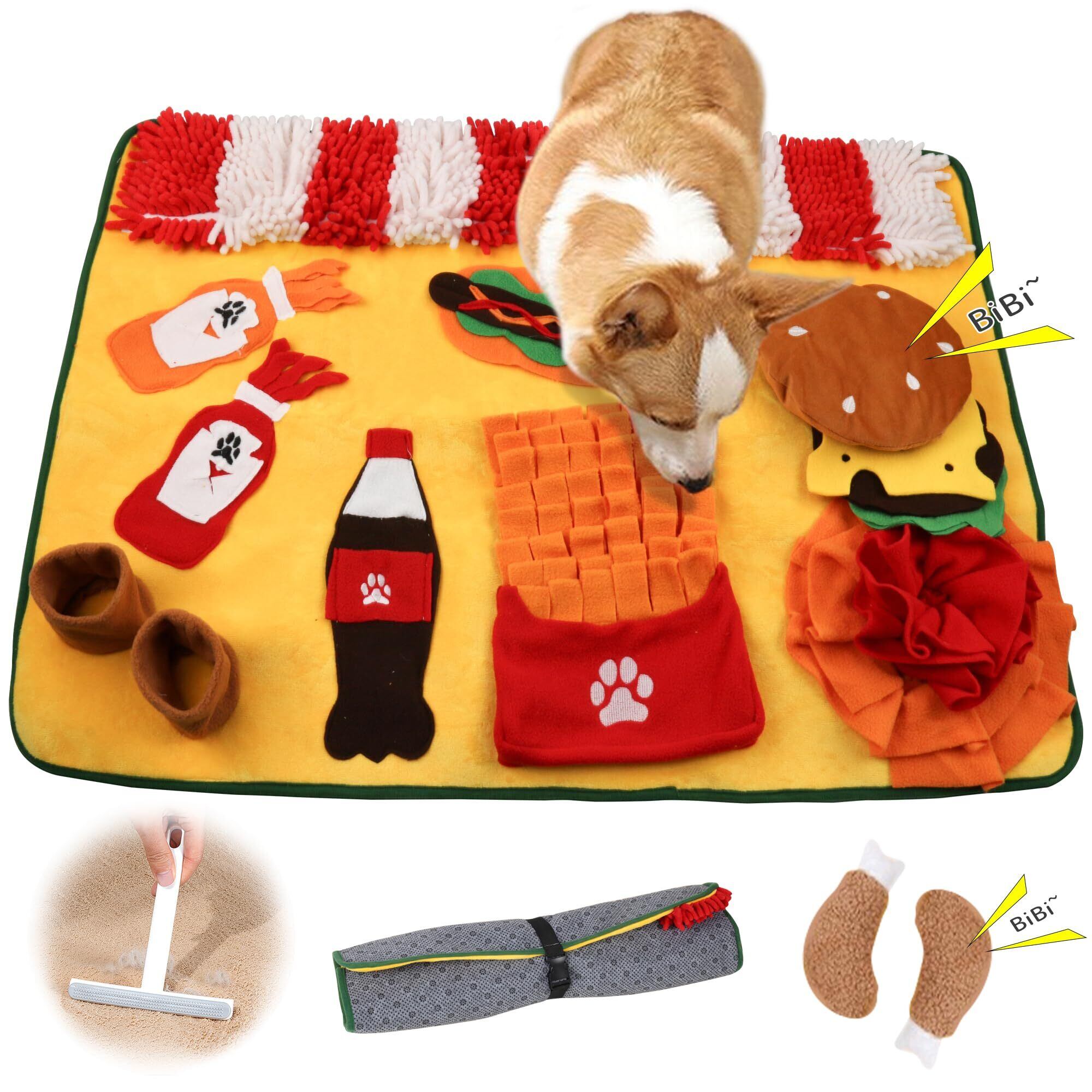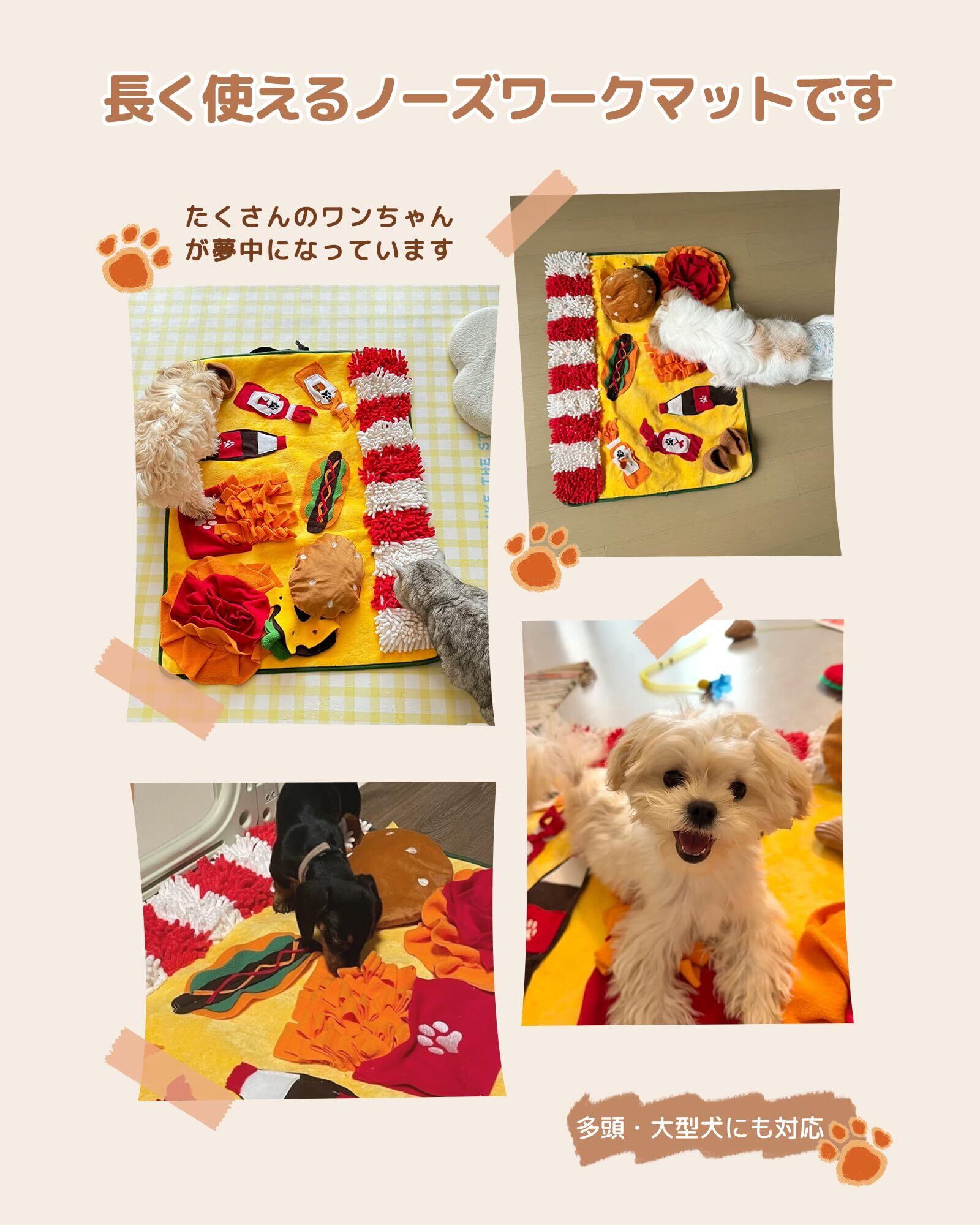 【犬の本能を刺激する訓練毛布】フライドポテト・バーガーなどの可愛いフードモチーフが満載!犬のおやつを隠してノーズワーク遊びができ、嗅覚・集中力・問題解決能力を自然にトレーニング。退屈解消&室内運動にも最適な犬用運動器具です。