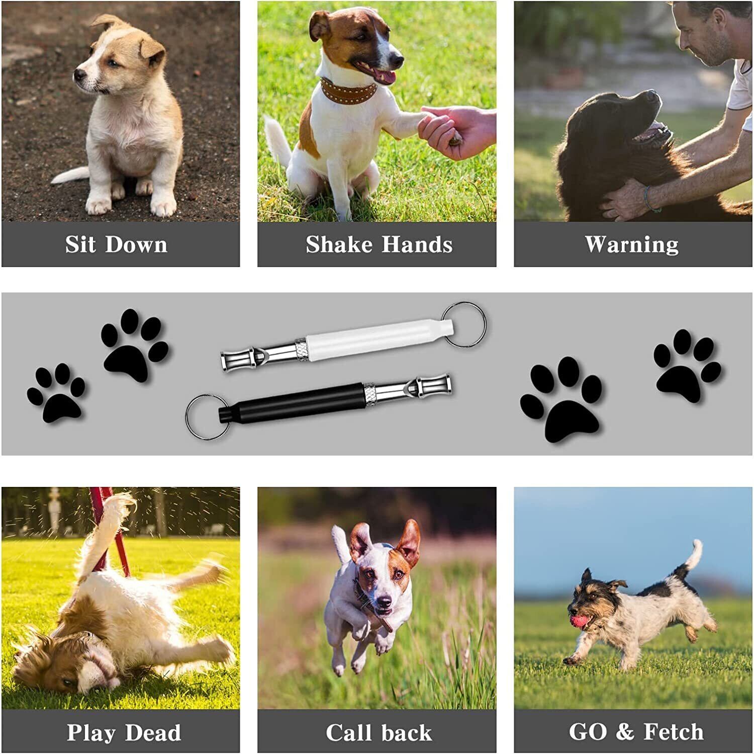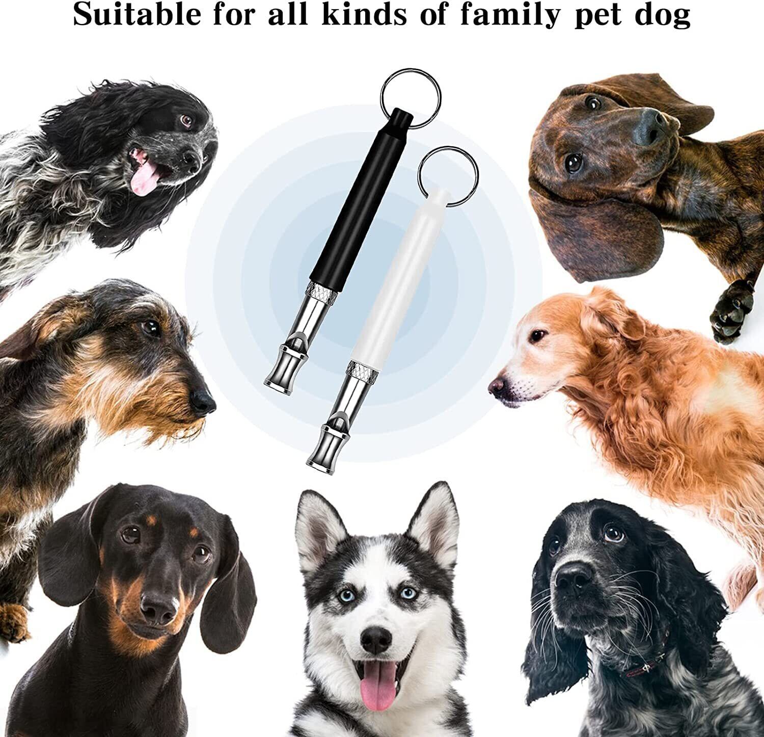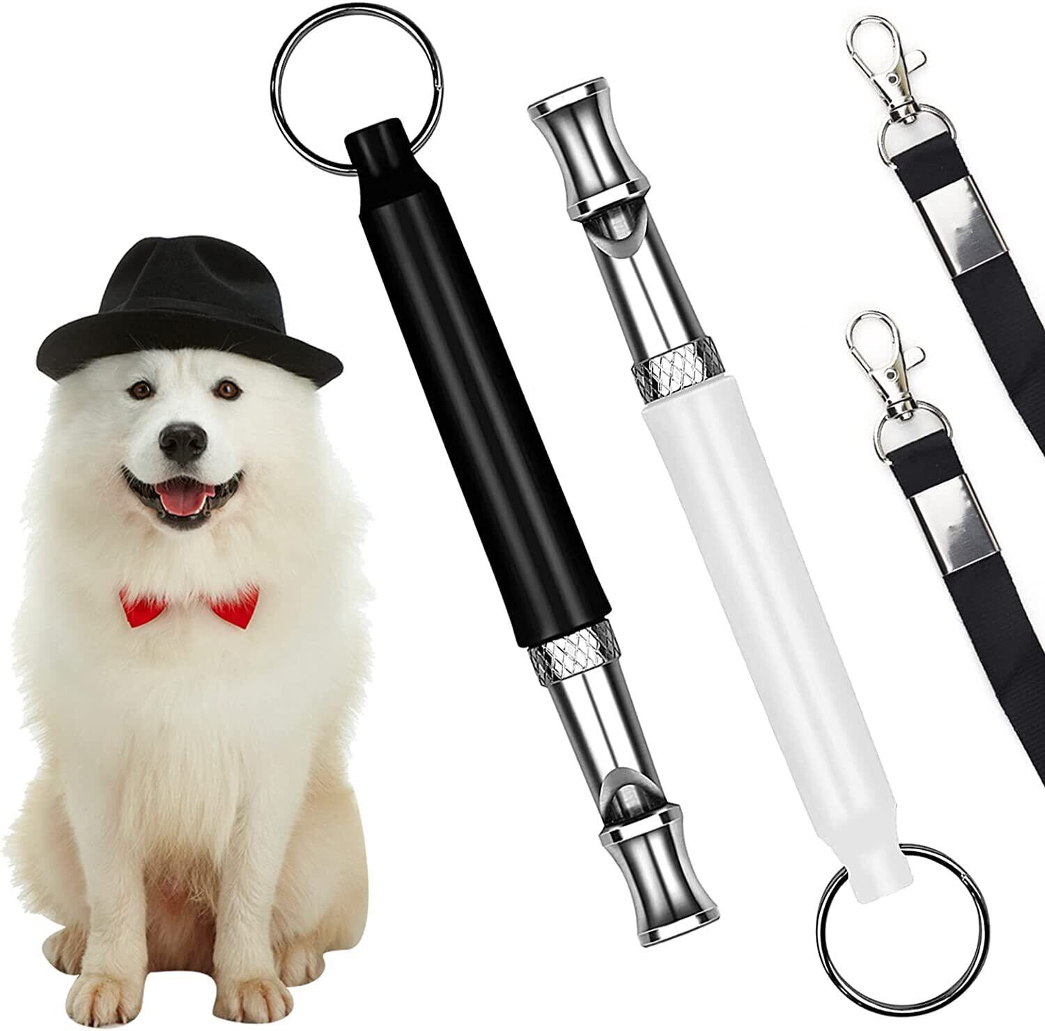 犬笛 吠え防止 2パック 調節可能なピッチ 超音波 静音 犬用ホイッスル 犬の訓練ツール 近所の犬の吠え防止 ペットのリコール 犬の攻撃を防止 ブラックストラップ付き (ブラック&ホワイト)