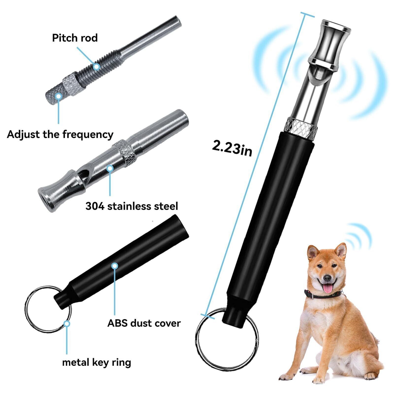 犬笛 2個パック 調節可能な超音波犬笛 近所の犬の吠え声を止める プロ仕様のリコール犬訓練用ホイッスル 吠え声制御ツール ブラックストラップ付き