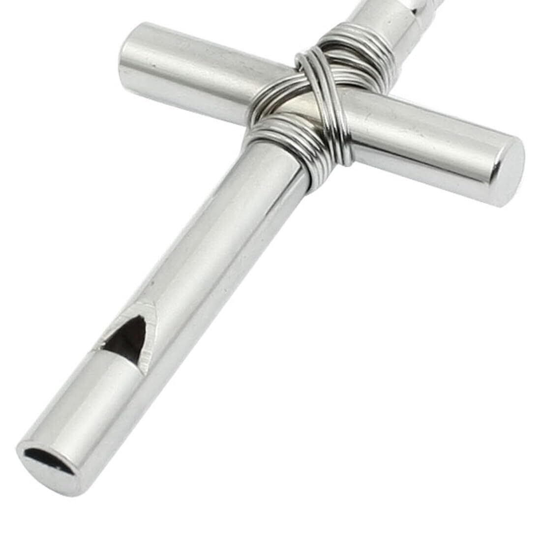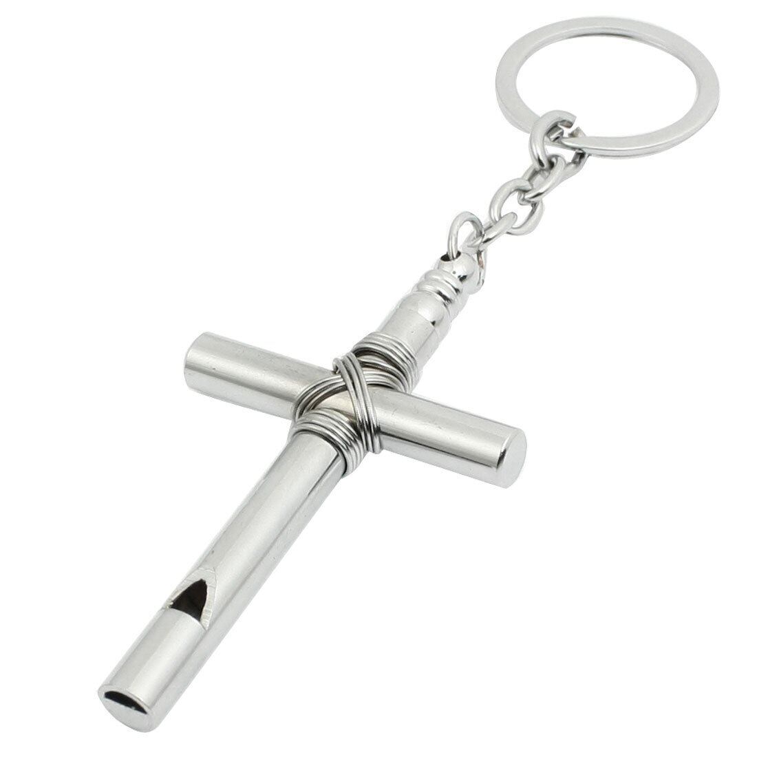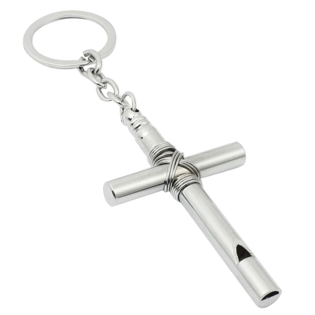 [uxcell] クロスホイッスルキーホルダーペンダント 金属製安全ホイッスルクロス緊急犬ホイッスル キーホルダーキーリング付きバックパックバッグ用 シルバー1個