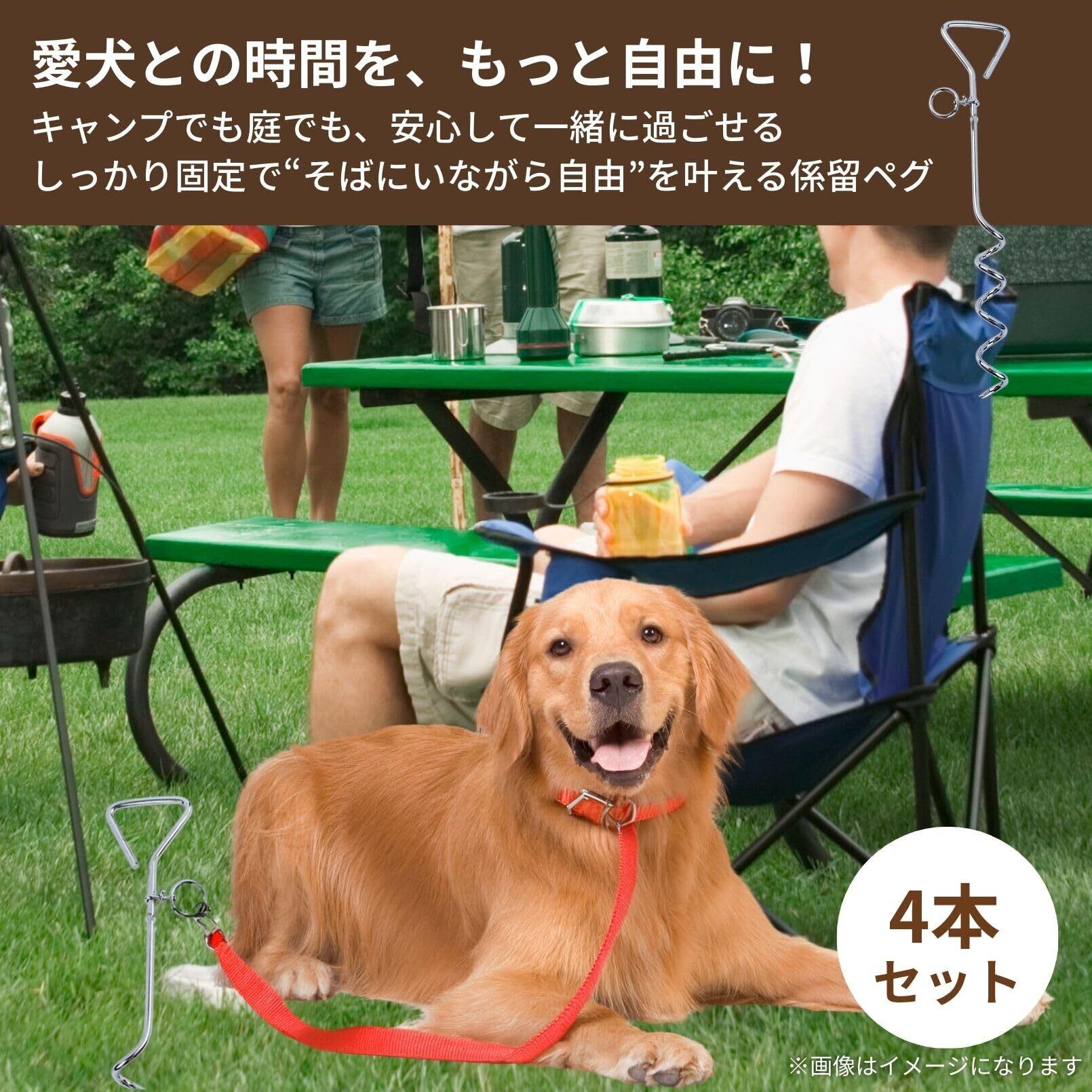 ドッグアンカー スクリューペグ 4本セット 犬用 係留 杭 地面固定 キャンプ 散歩用 ドッグポール (4)