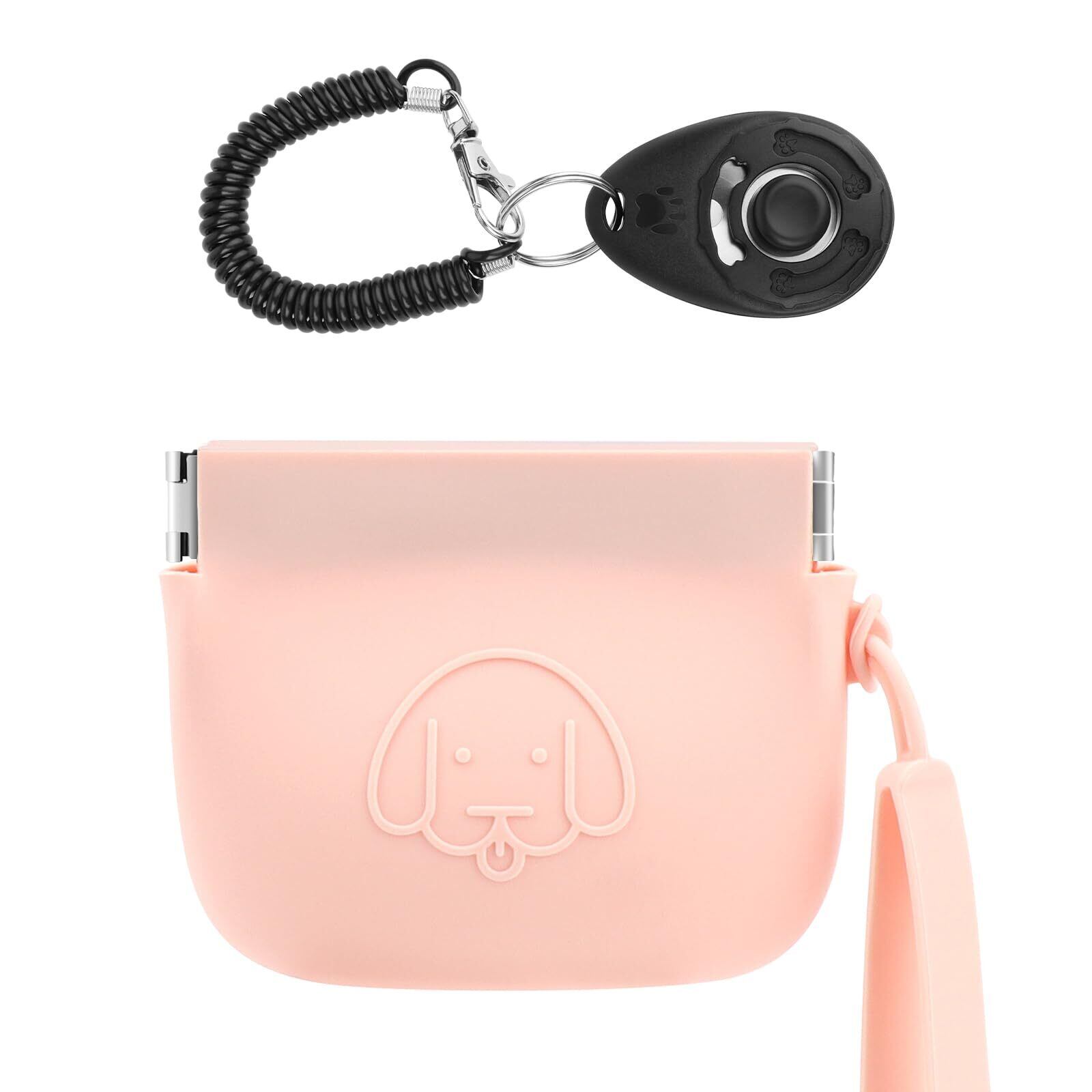 シリコン トリーツポーチ 犬の訓練用品 自動閉まりお手入れが簡単で防湿性にも優れています犬の散歩用品 持ち運びが簡単犬猫ペットのお散歩バッグ (ピンク)