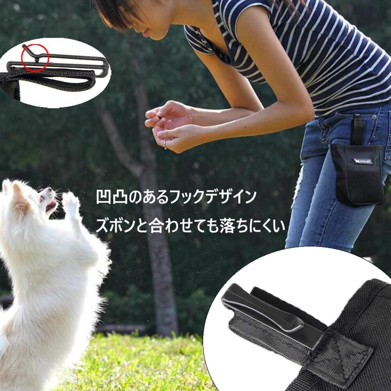 【幅広い用途】主に犬のトリーツポーチ、犬のお散歩バッグとして使用。 また、ハイキングやキャンプなどのアウトドア活動用の小物入れバッグとしても使用できます。 男女兼用のファッショナブルなデザイン。